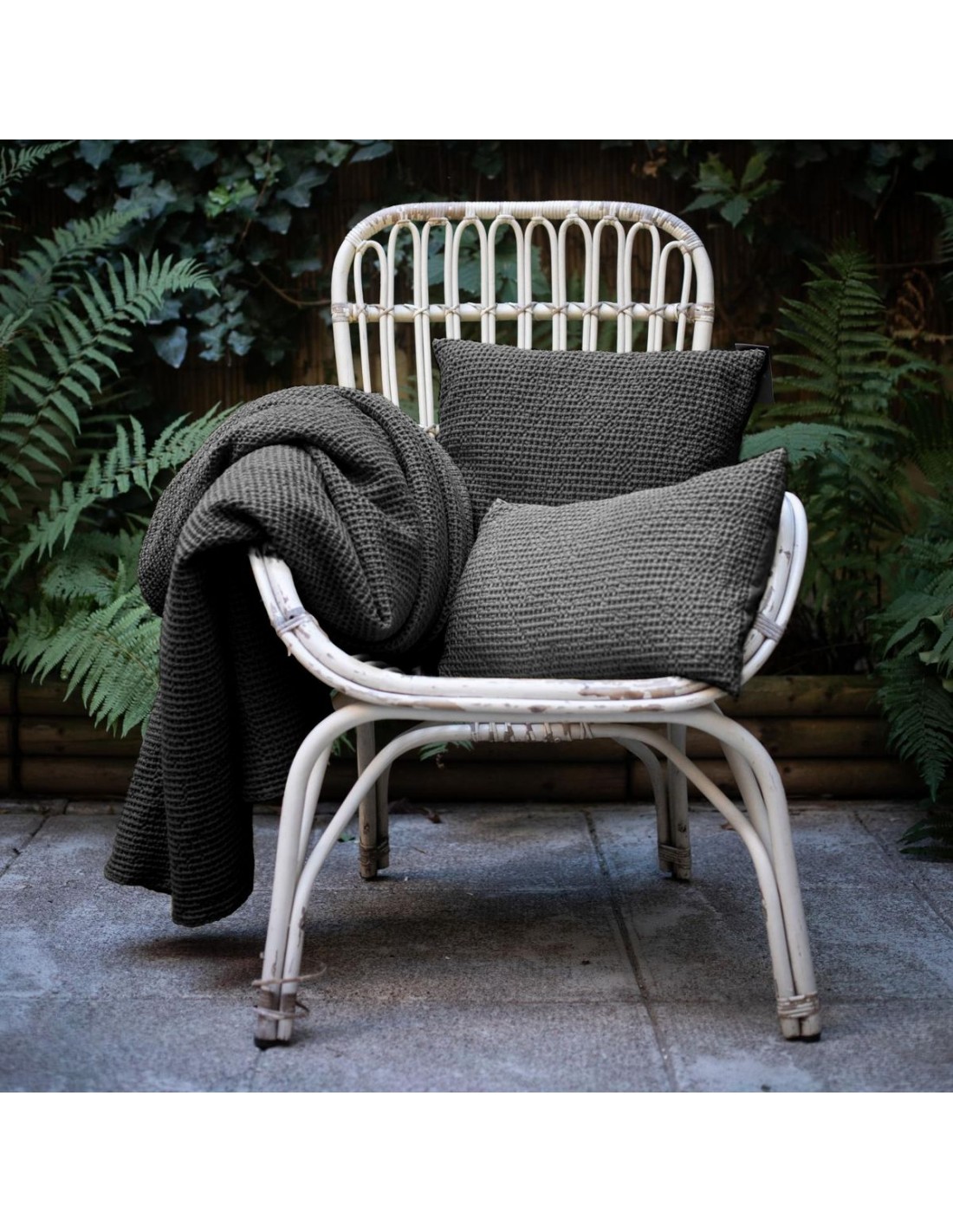 Dekorativní bavlněný povlak na polštář v šedé barvě s lehkým nádechem do hněda. Lícová strana povlaku je tvořená vzorem plástvových okýnek, zadní strana z hladké bavlněné látky ve stejné barevnosti. Povlak polštáře se snadno udržuje, lze ho prát v pračce na 40st., žehlit na st. 2. K povlaku doporučujeme objednat výplň z dutých vláken (obj. kód VI0006VMX).