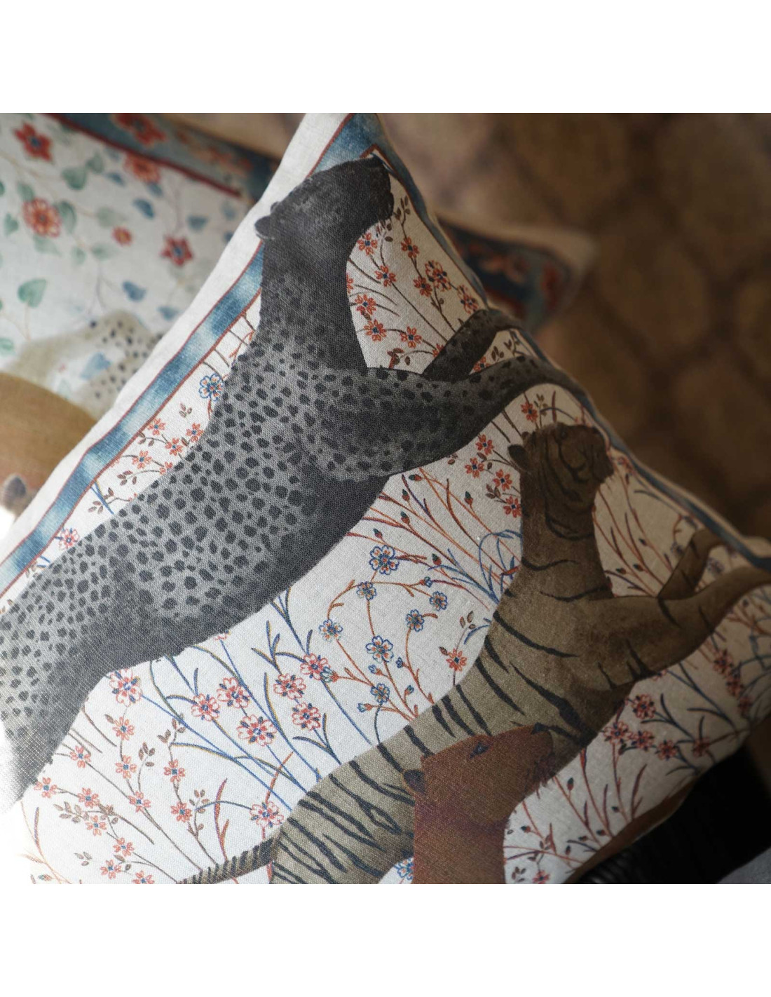 Wow doplněk vašeho interiéru! Lněný povlak pro polštář s úžasným potiskem běžících divokých šelem. Originální design vnese do interiéru dynamiku a energii, hezká bude kombinace s jednobarevnými polštářii.