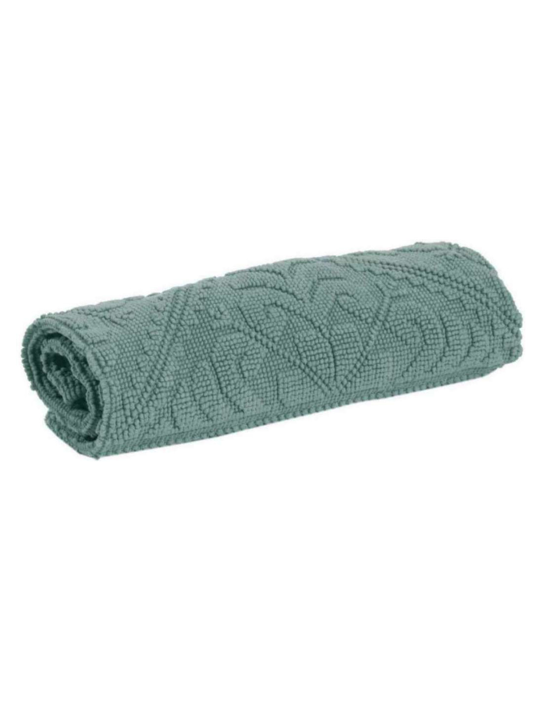 Koupelnová předložka Enzo v příjemném modro-šedo-zeleném odstínu vodní hladiny, s vytkávaným, plastickým vzorem. Na omak příjemný a savý bavlněný materiál je zárukou vaší spokojenosti.