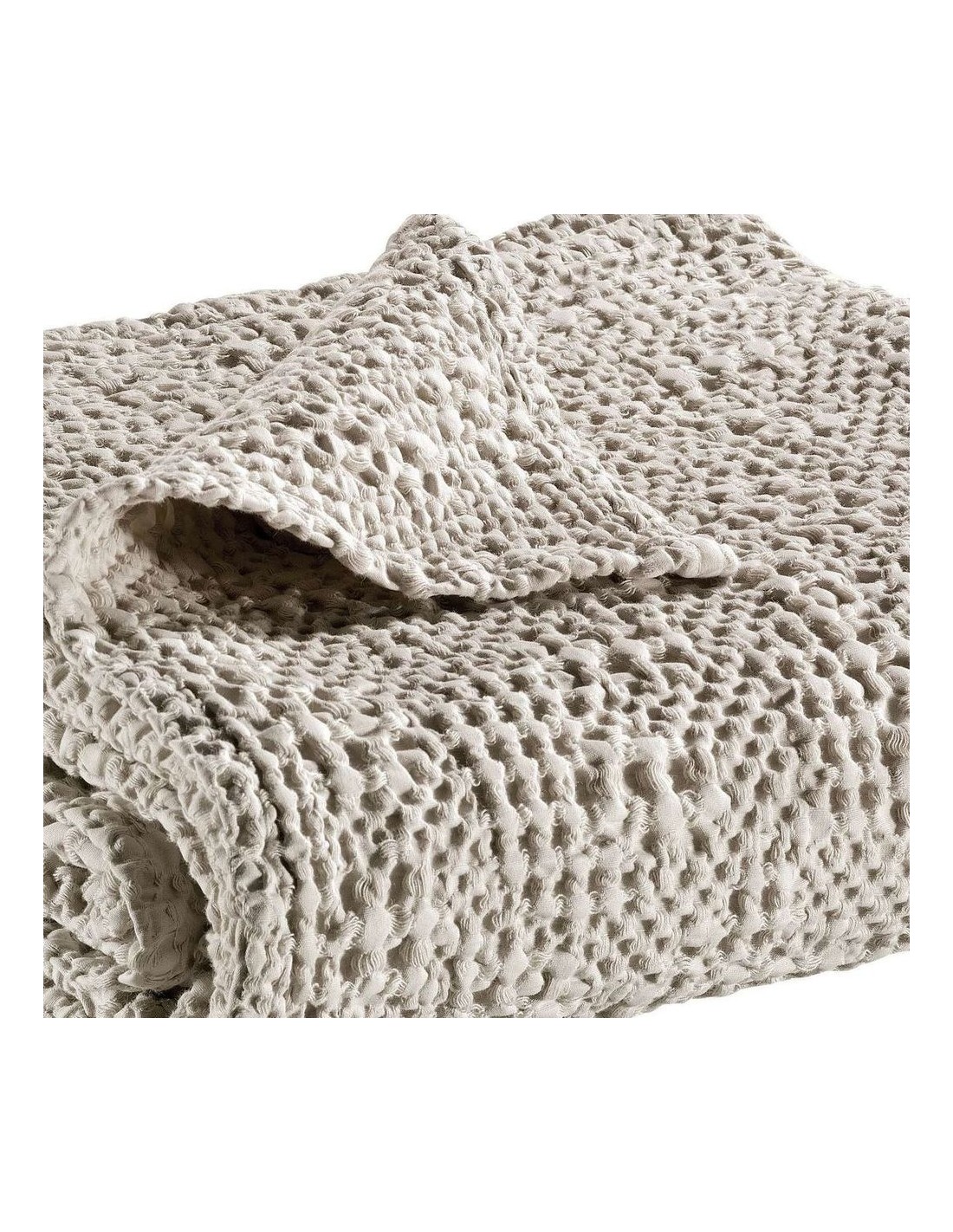 Jemný přehoz v dobře kombinovatelné barvě přírodního lnu, příjemný bavlněný materiál s nepravidelným plastickým vzorem připomínajícím včelí plástve.