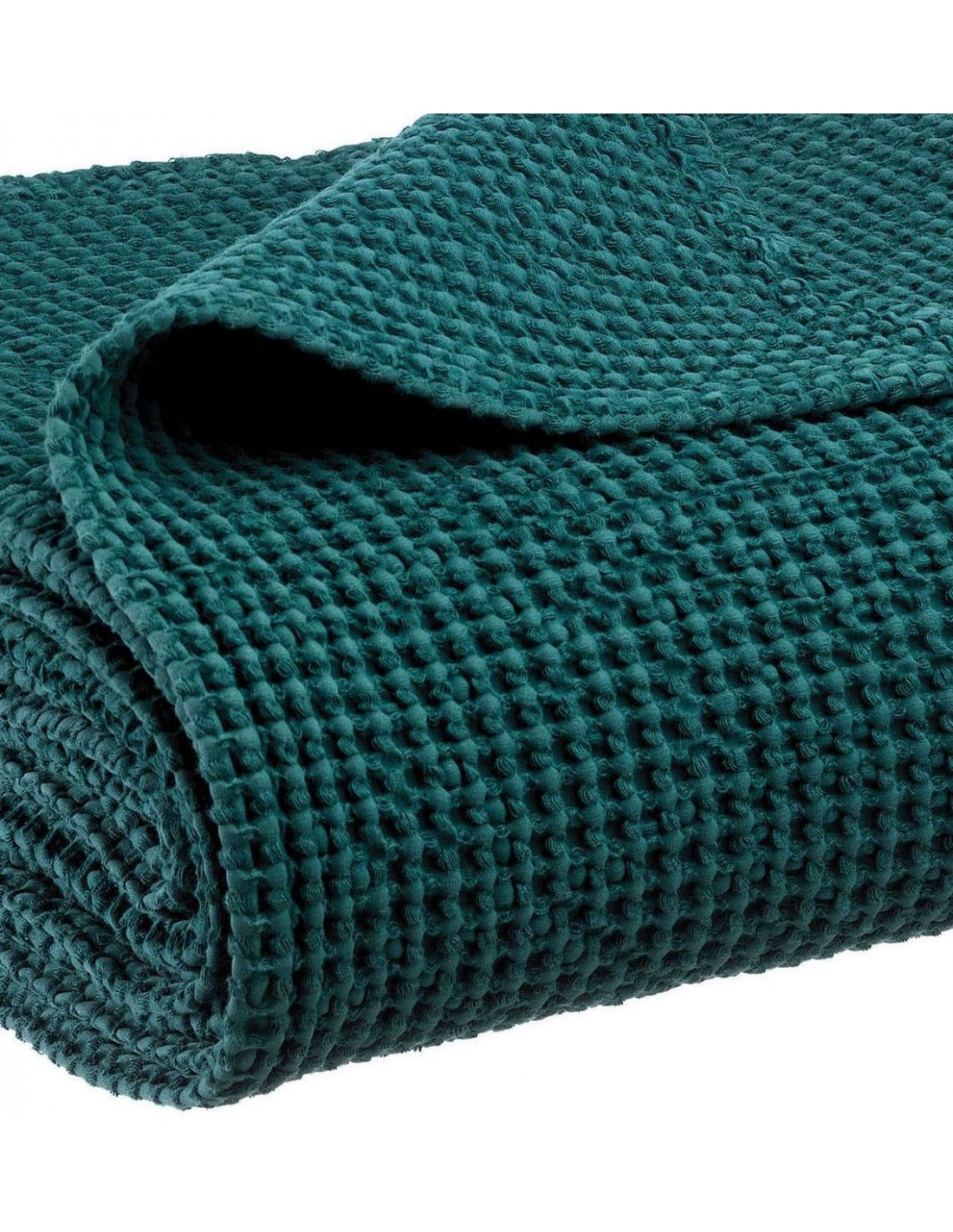 Bavlněný přehoz Maia s plastickým plástvovým vzorem v pertrolejové modré barvě. Díky materiálu, zpracování, nabídce barevných odstínů ve francouzském stylu, ale i pro svoji snadnou údržbu jsou tyto přehozy oblíbené u našich zákazníků.