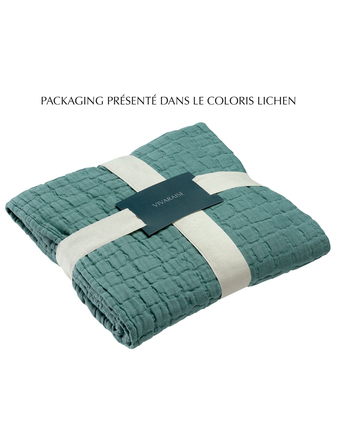 Rozměr: 240x260cm. Složený přehoz je přepásaný širokým látkovým tkalounem a etiketou zn. Vivaraise.