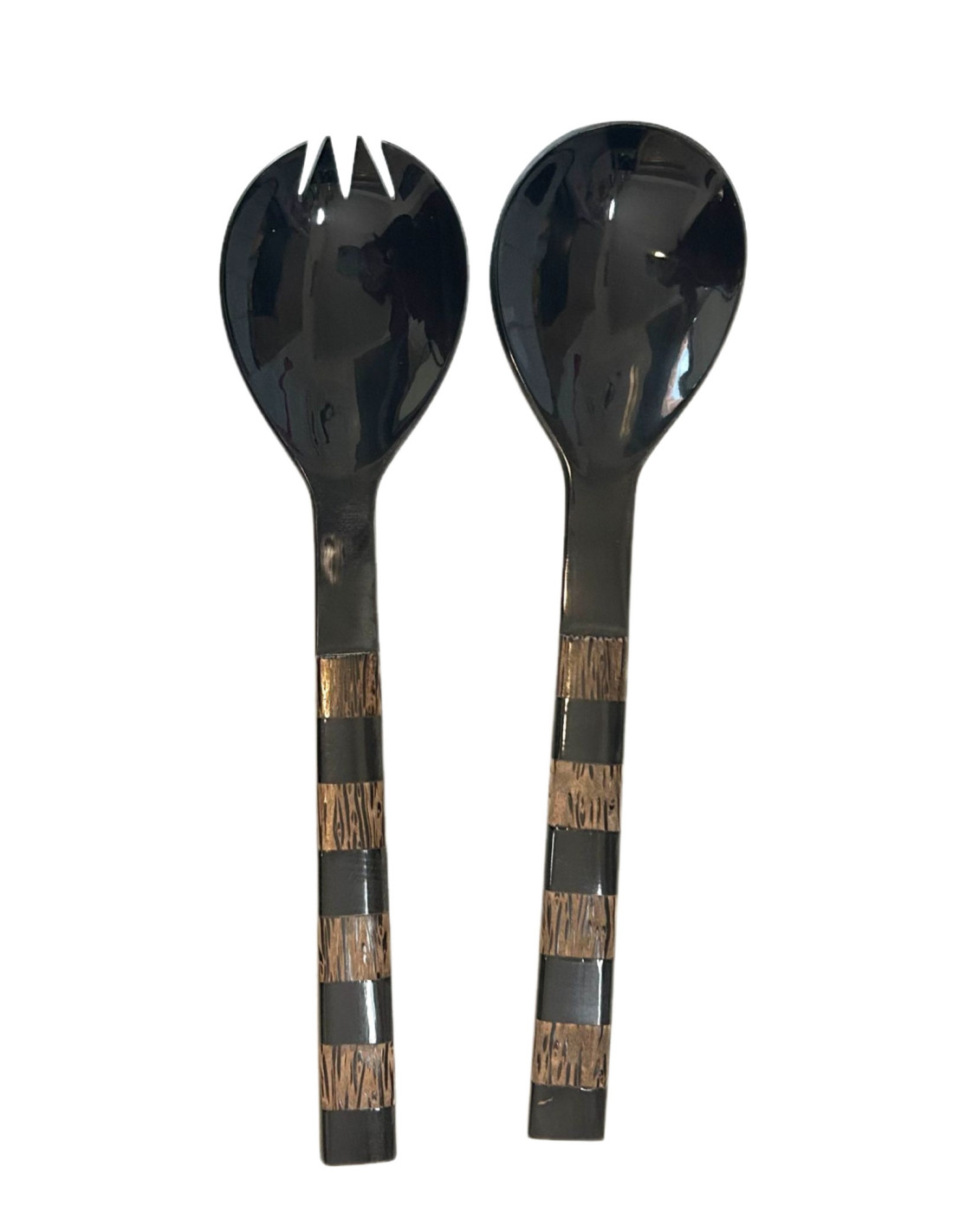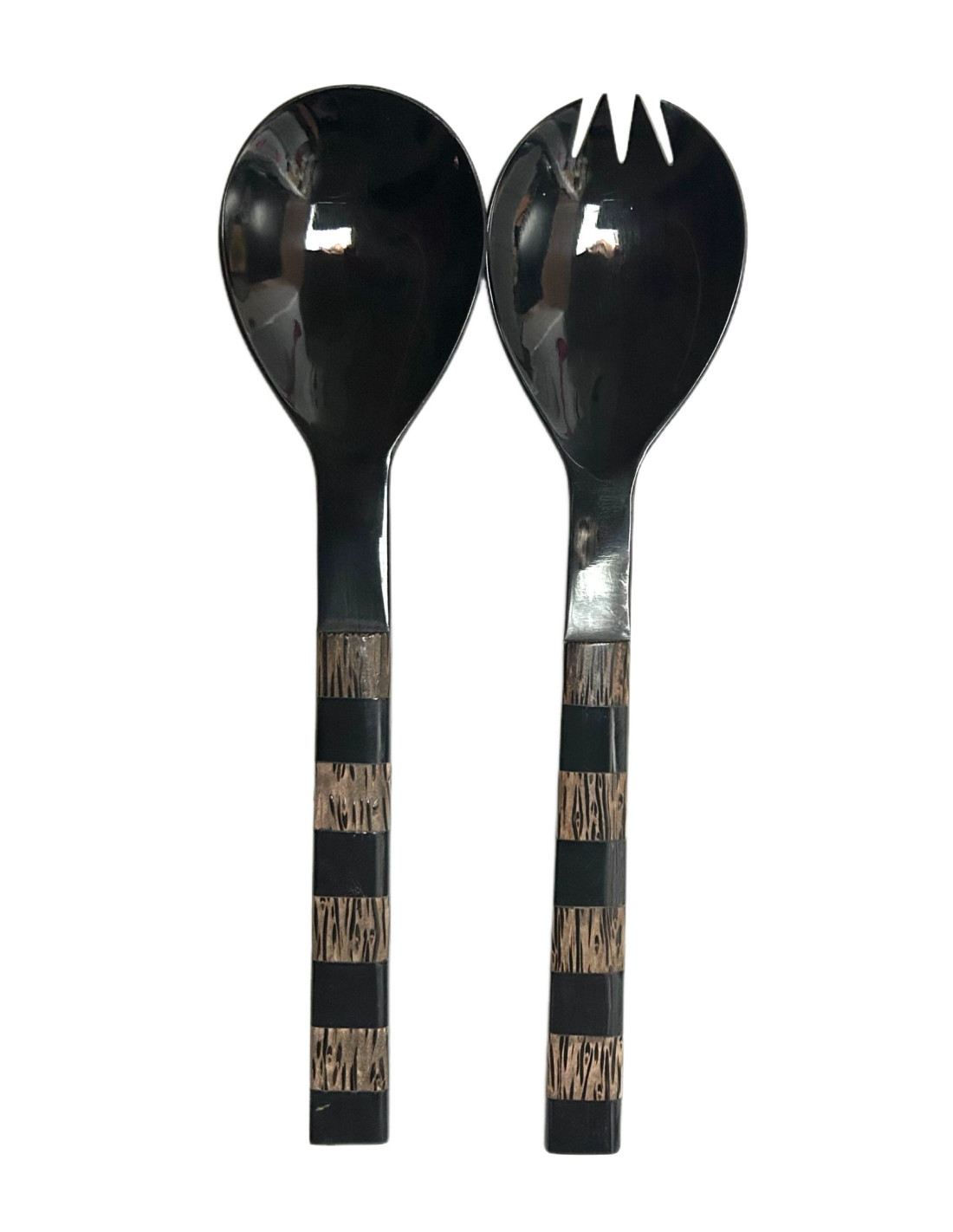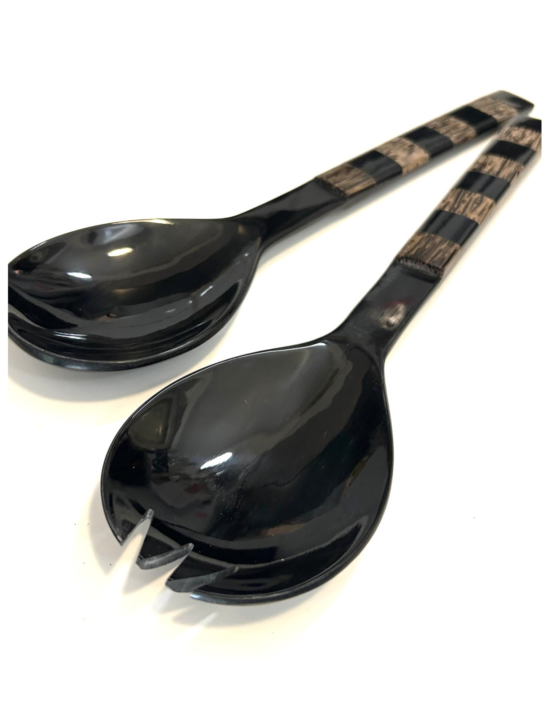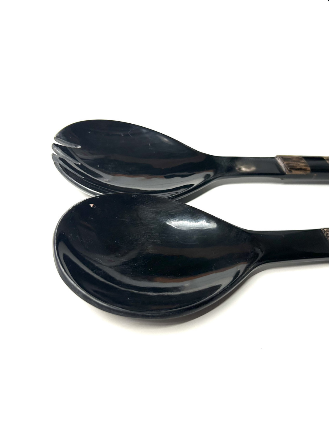 Stylový salátový set z rohoviny a exotického dřeva kombinuje krásné přírodní materiály s jemnou elegancí, ideální pro každodenní i slavnostní stolování.