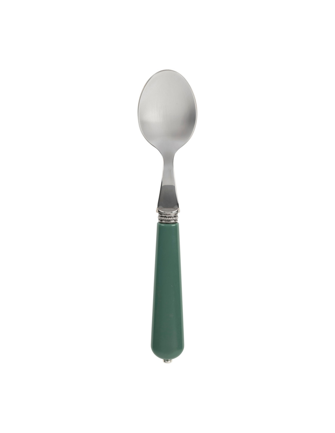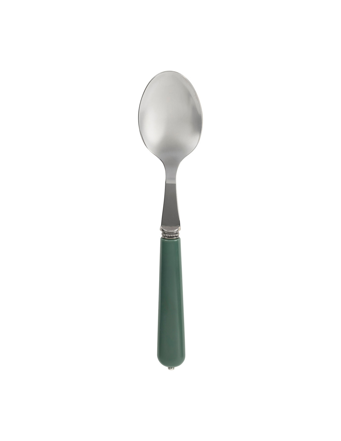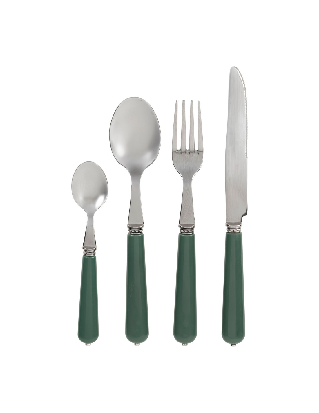 Sada příborů z nerezové oceli s plastovou rukojetí v tymiánově zelené barvě.