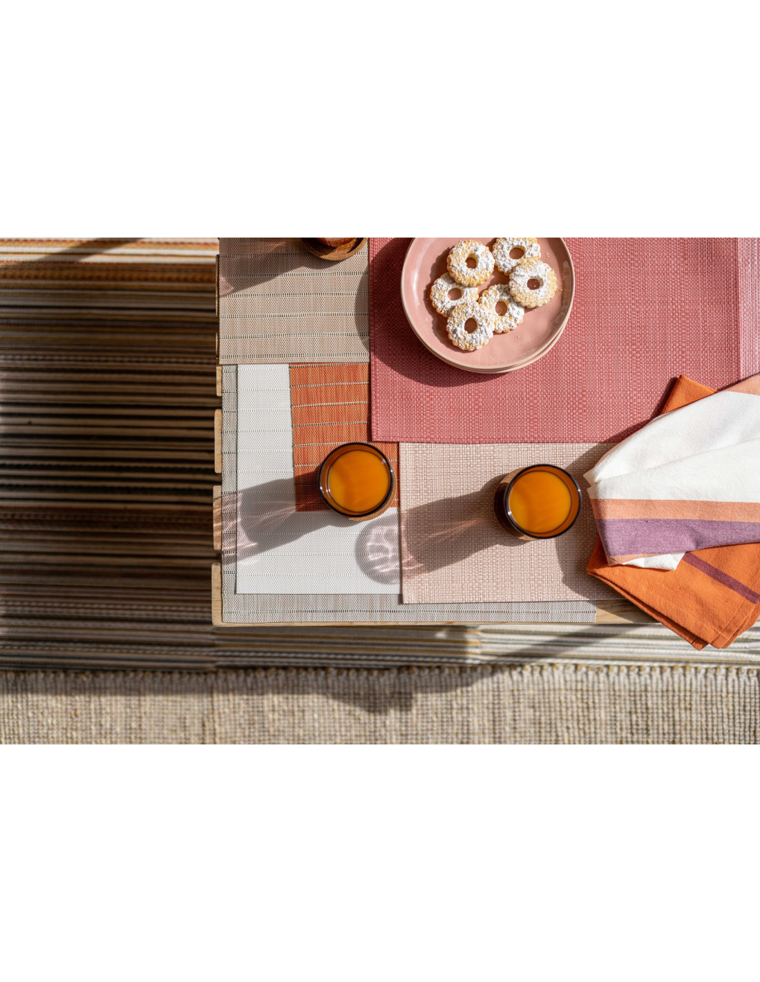 Stylové prostírání se strukturou přírodního materiálu je velmi elegantní i praktické – nevsakuje tekutiny, nevadí mu skvrny a k vyčištění většinou stačí otřít vlhkou houbičkou.