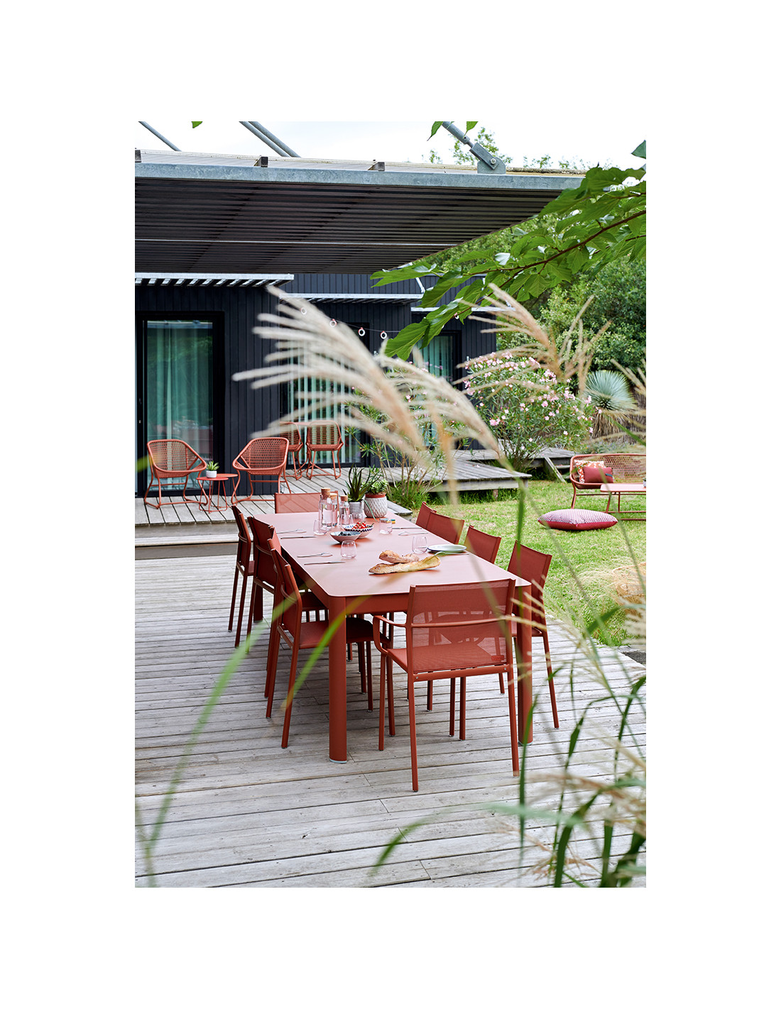 Stůl se hodí na terasy, zahrady, ale i do interiérů. Vyrábí se v mnoha barevných odstínech, spolu se židlemi se tak dá vytvořit ideální jídelní sestava.