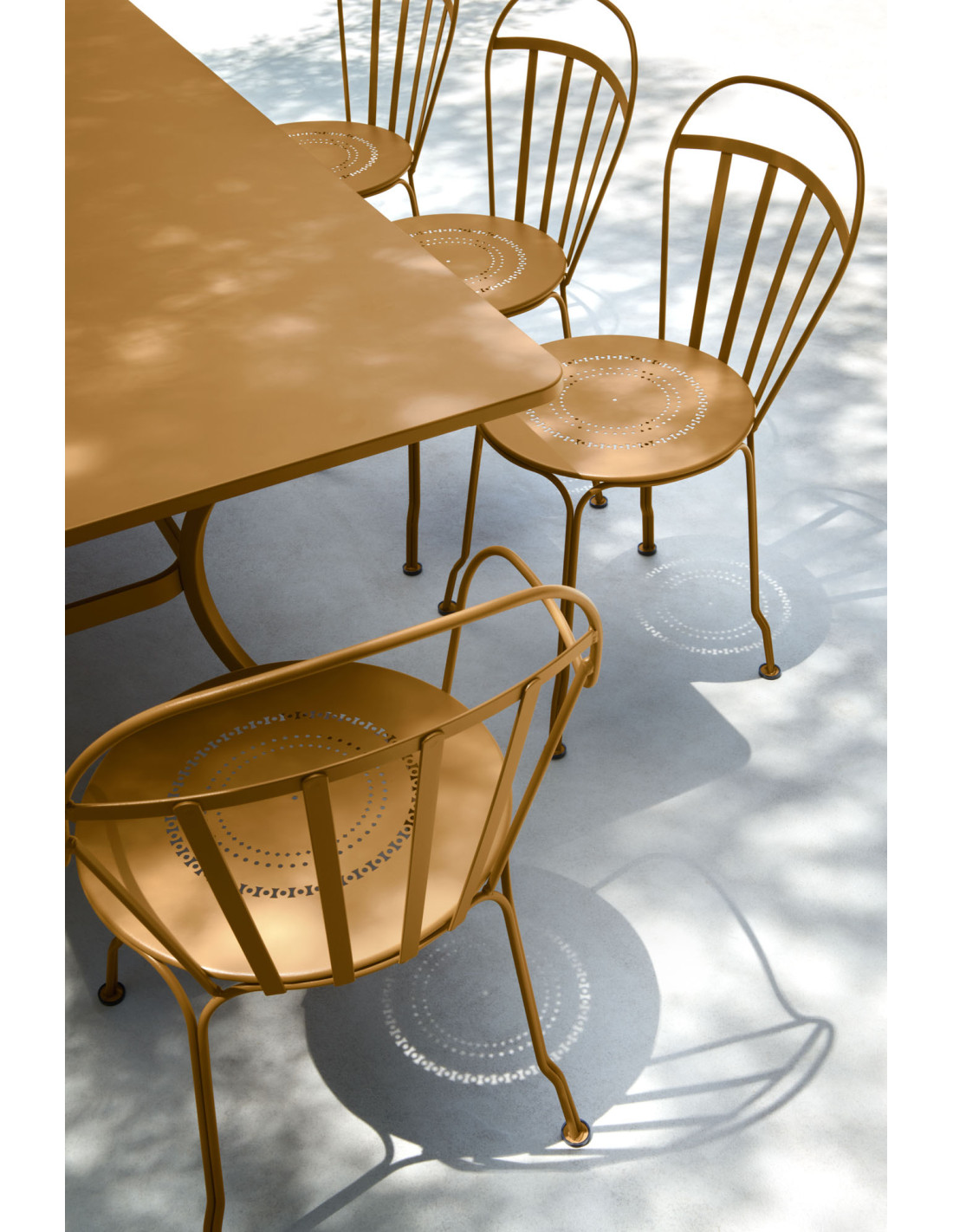 Je navržen tak, aby se stal přirozeným centrem každého venkovního posezení, ať už na terase nebo v zahradě. Dostupný je v široké paletě barev Fermob, díky nimž snadno vytvoříte atmosféru přesně podle svého vkusu.