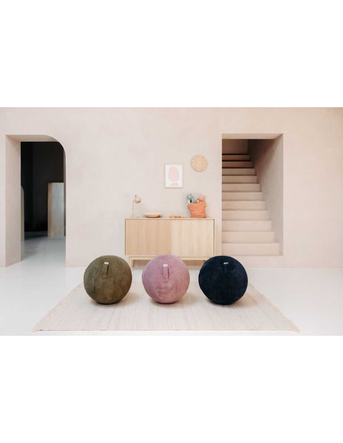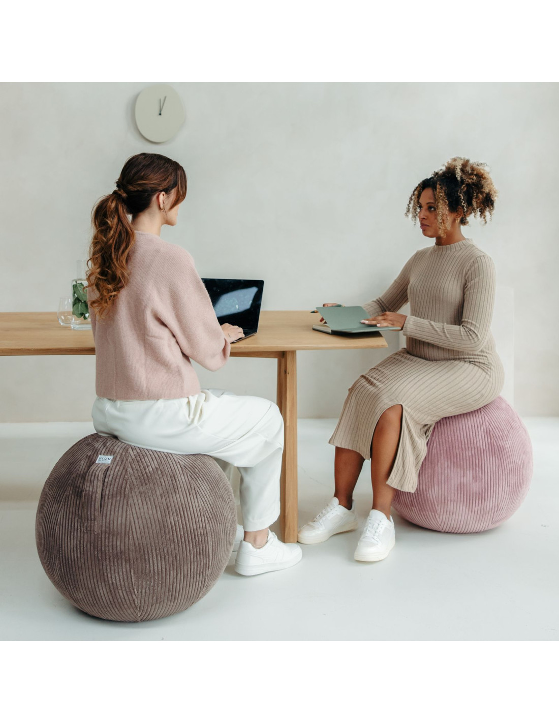 Odolný látkový potah ve vzhledu manžestru v růžovo-fialové barvě je velmi příjemný na omak a zabydlí se v každé domácnosti i kanceláři. Díky uchu ho můžete jednoduše přemístit pomocí jedné ruky. Sedací balon získal ocenění IGR, který ho označil za nejergonomičtější produkt.