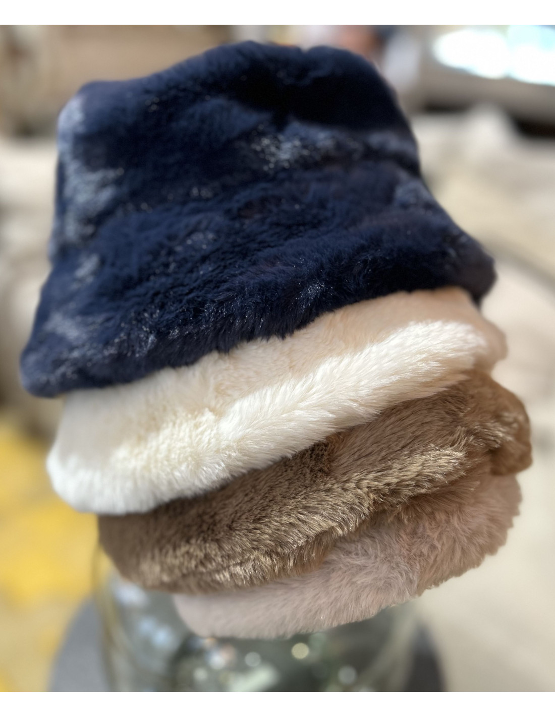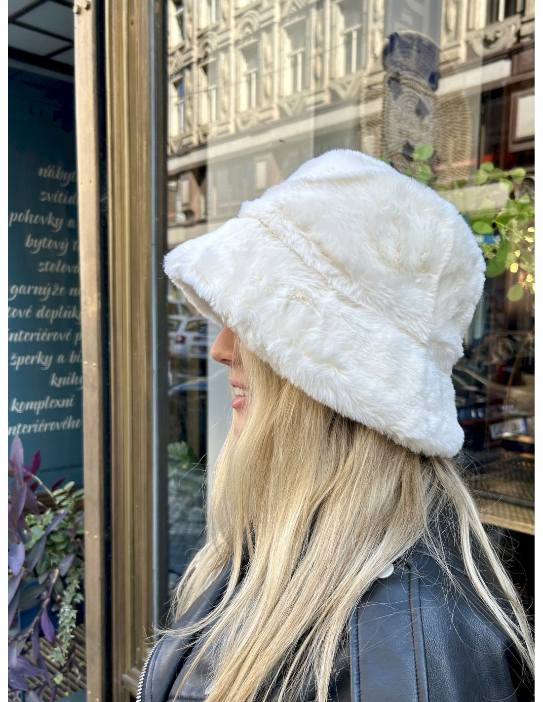 Módní i moderní pokrývka hlavy z umělé kožešiny s hladkým a měkkým rovným chlupem.