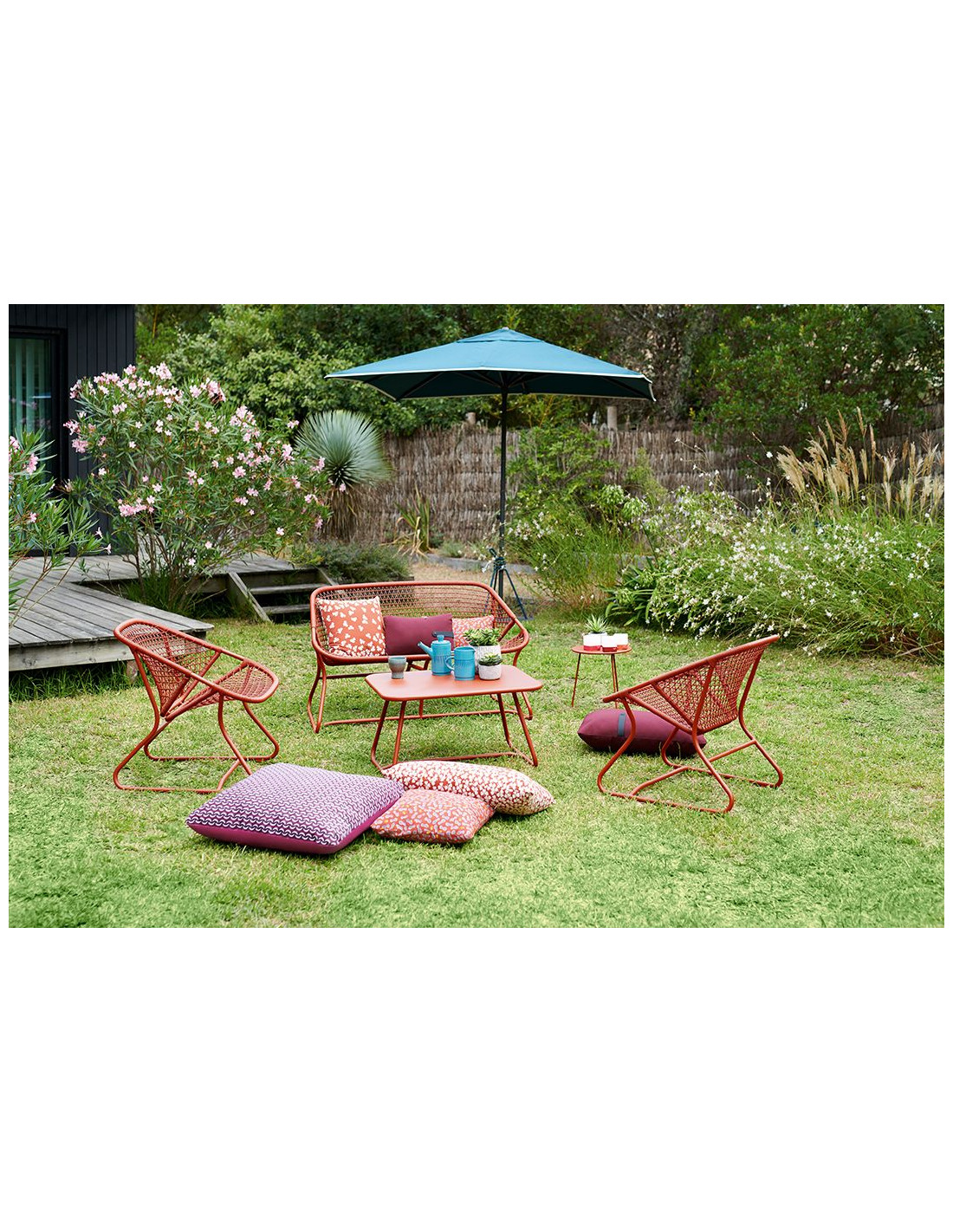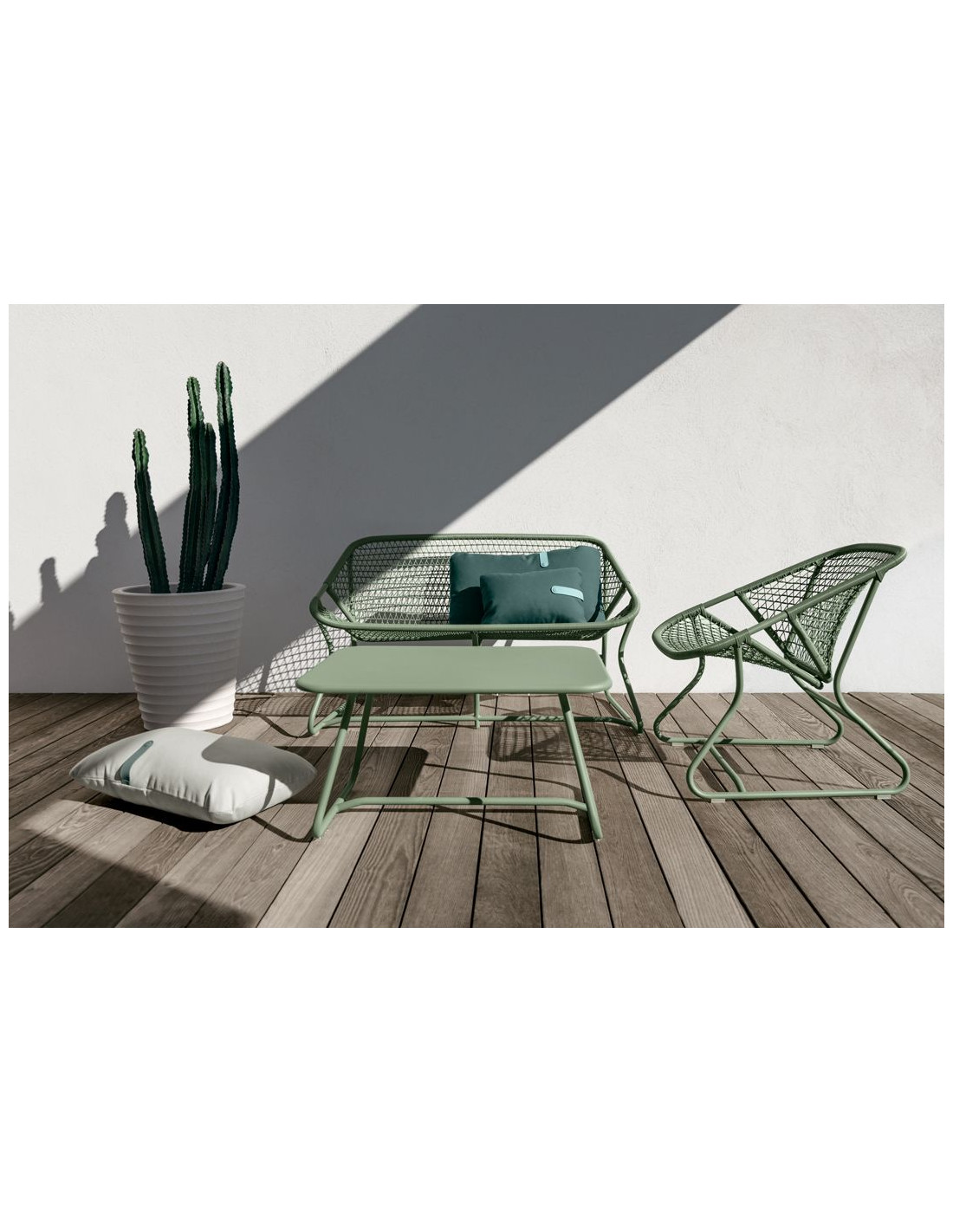 Kovový, nízký stůl v liniích designu 60. let dodá vašemu prostoru dekorativní nádech, skvěle se hodí k židli a lavici ze stejné modelové řady. Stůl je kompaktní, snadno ho umístíte na balkon, ale i ve vnitřním prostoru si najde své místo. Vyrábí se v mnoha barevných odstínech.