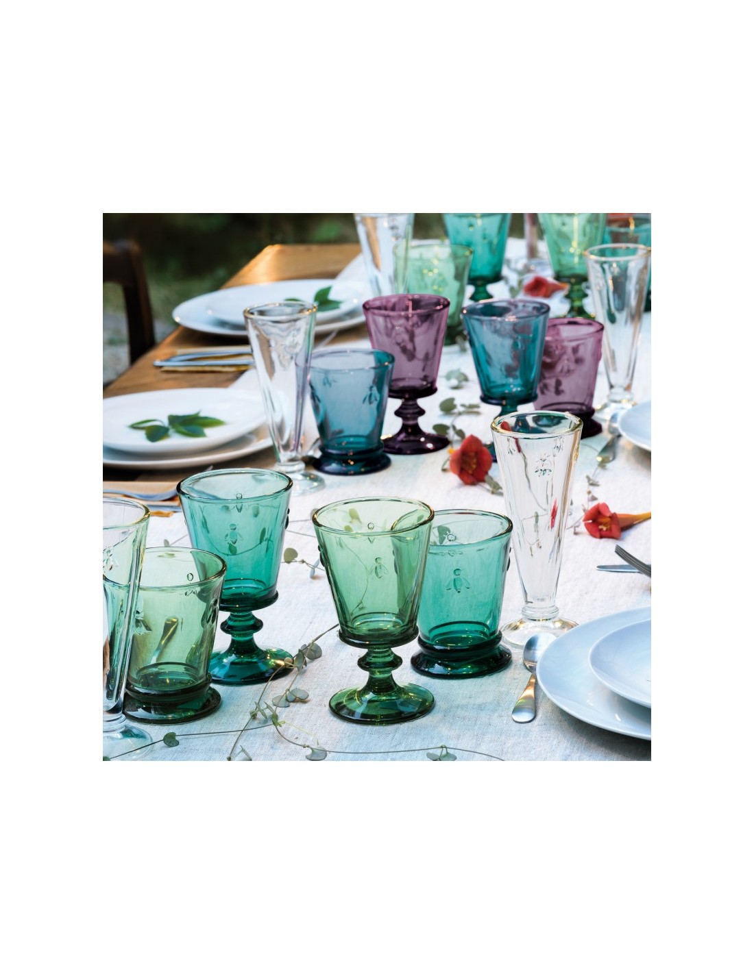 Krásná, nadčasové sklenice s motivem včely, tentokrát v modrošedé barvě, je vhodná na vodu či jiné nealkoholické nápoje.