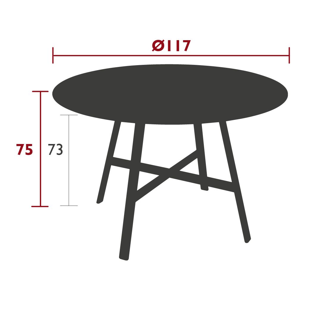 Rozměry: průměr 117cm, výška 75cm. Materiál: ocel s venkovní povrchovou úpravou, s UV ochranou.