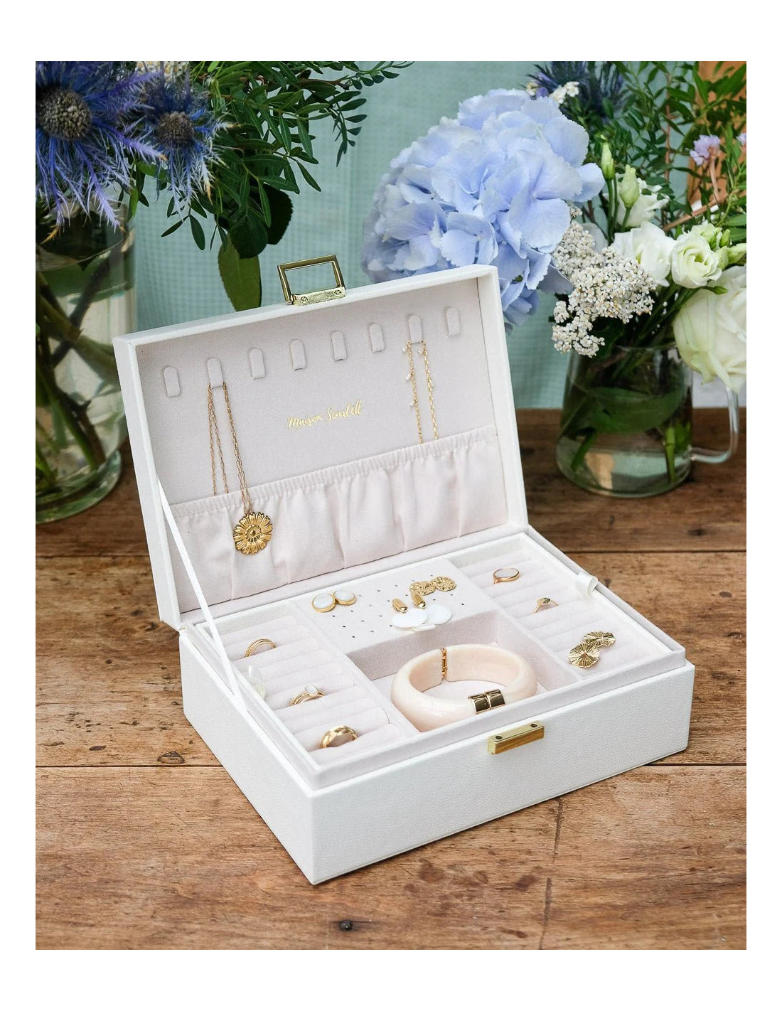 Dvoupatrová šperkovnice z bílé umělé kůže | MAISON SCARLET