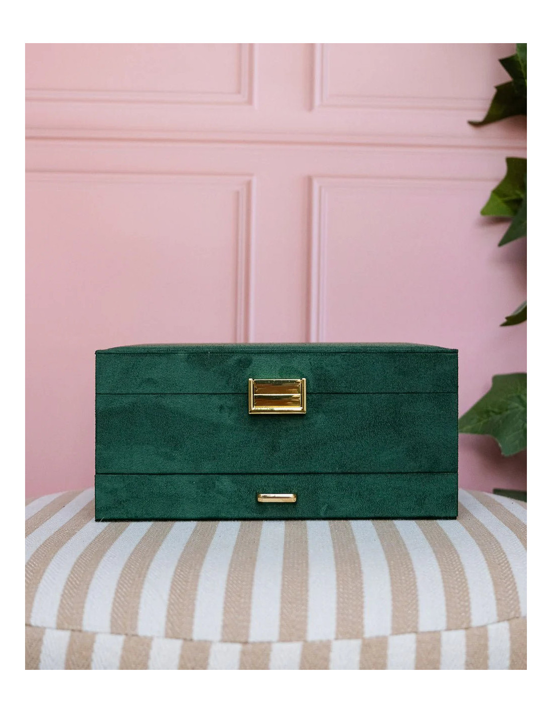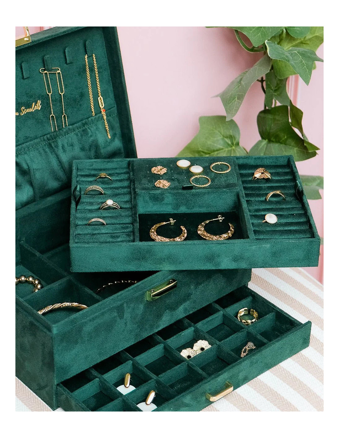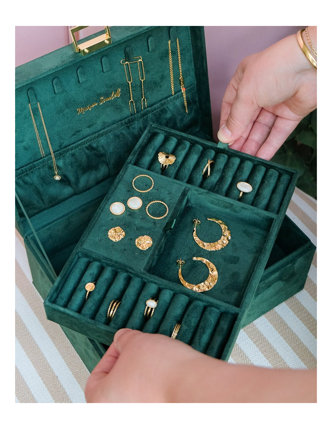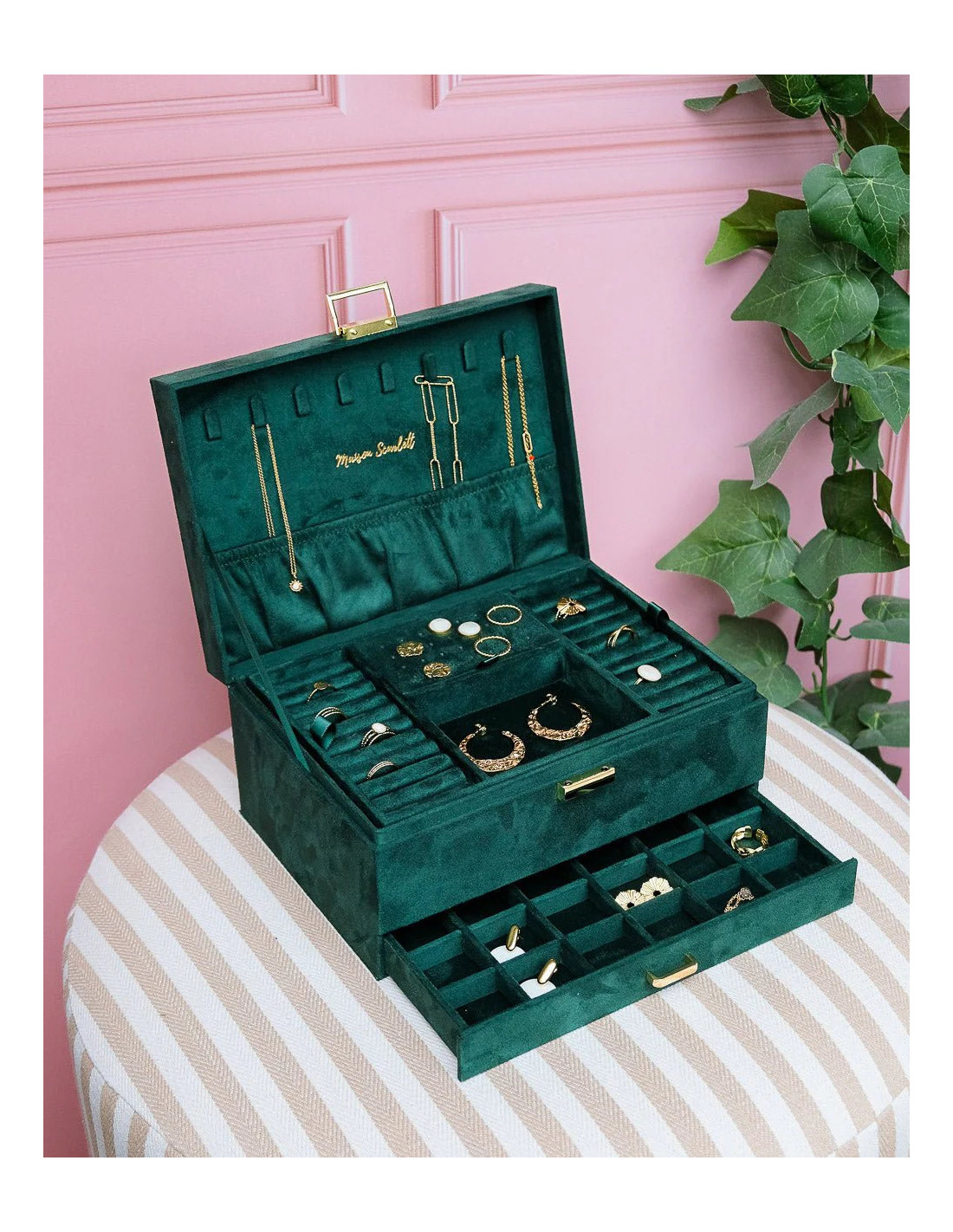 Dvoupatrová šperkovnice se zásuvkou ze zeleného sametu | MAISON SCARLET a