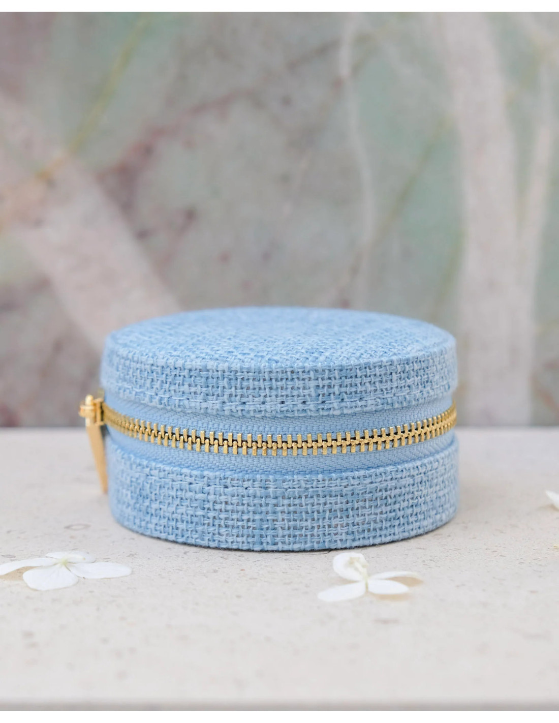Kulatá cestovní šperkovnice s motivem kouhoutí stopy - šeříková | MAISON SCARLET