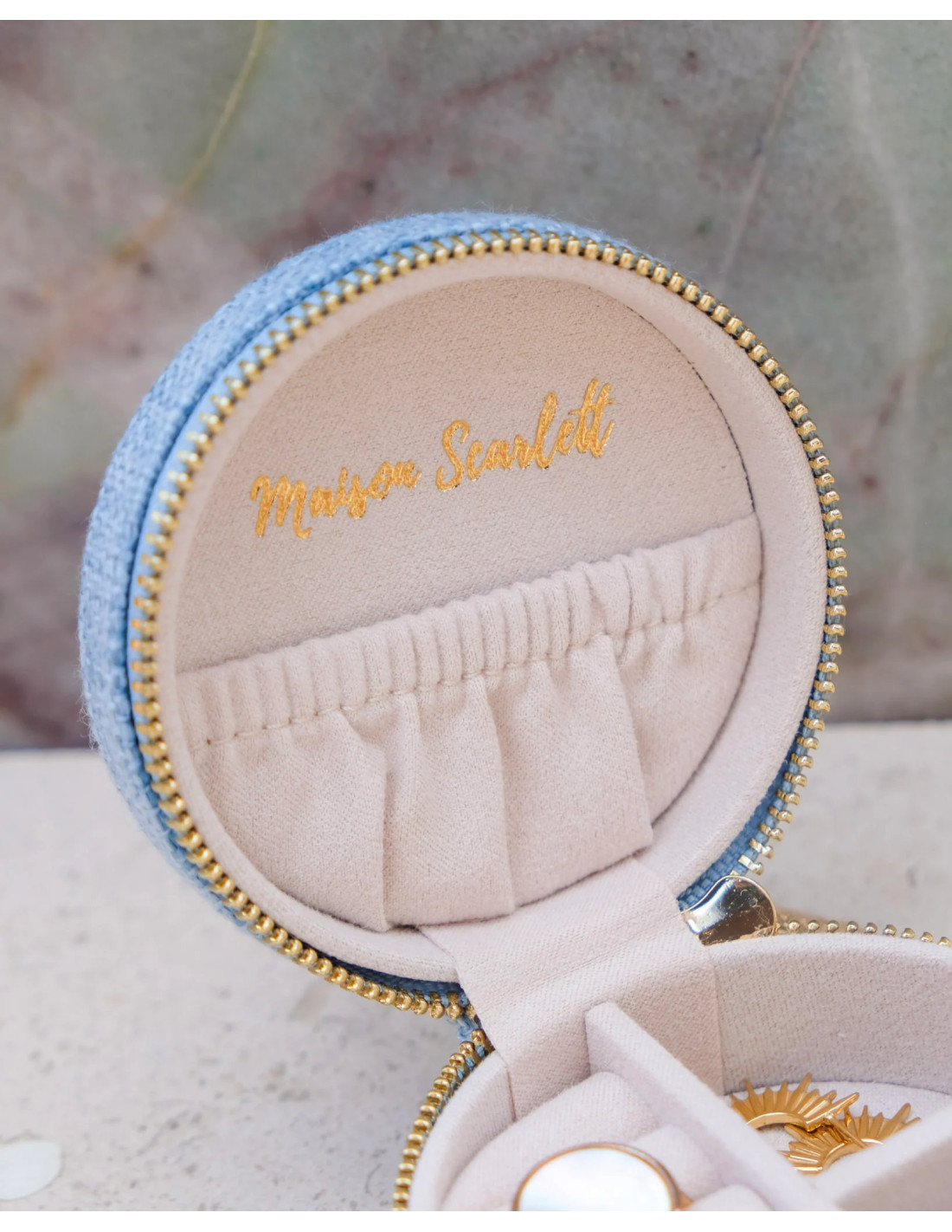 Kulatá cestovní šperkovnice ve vzhledu lnu| MAISON SCARLET d