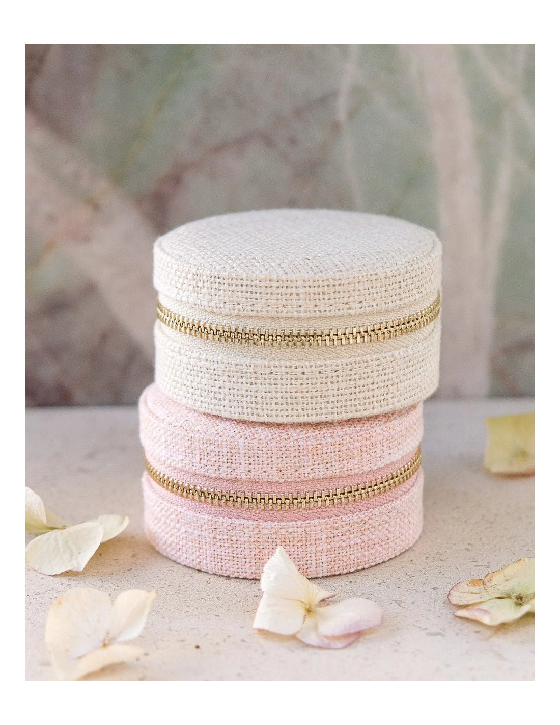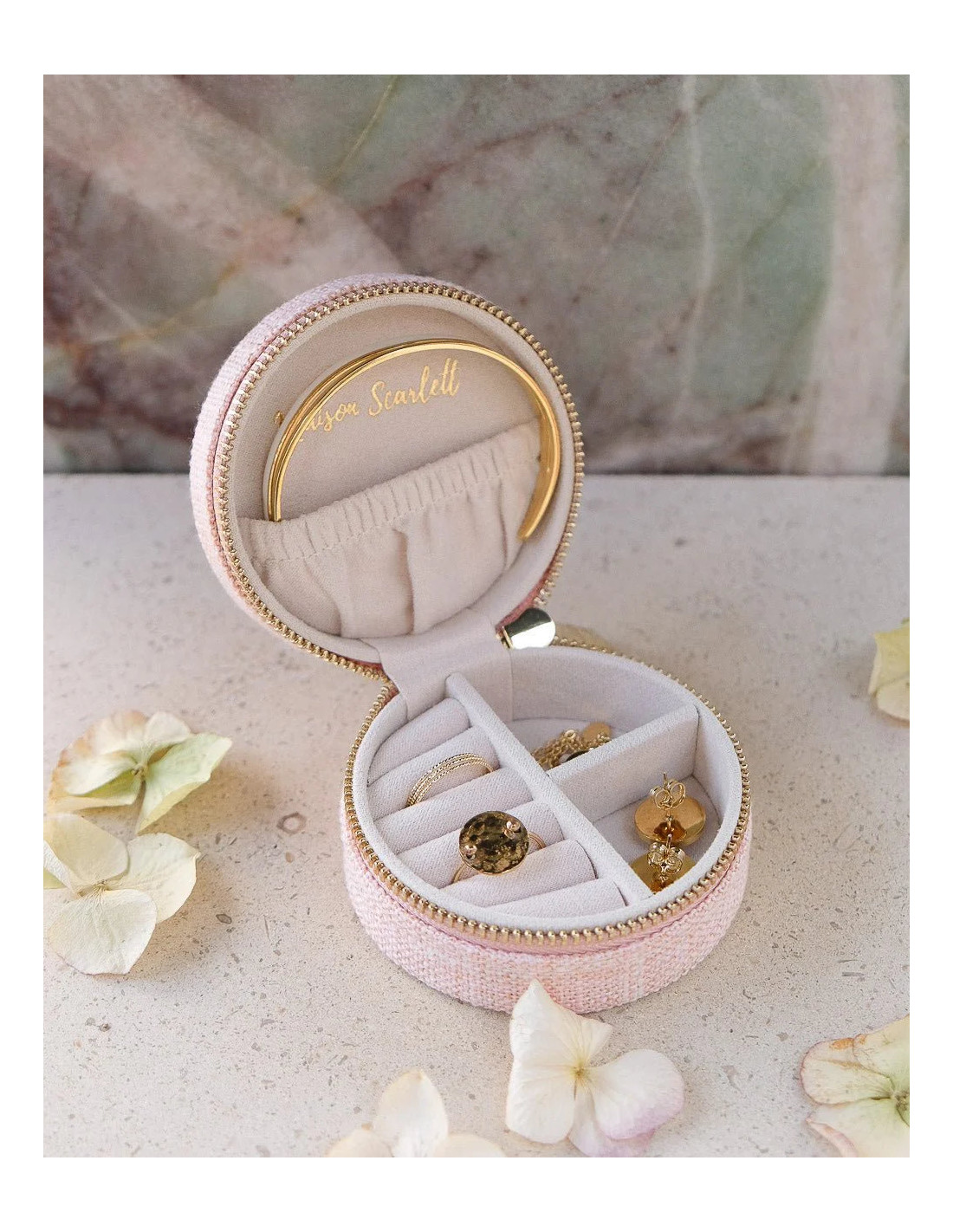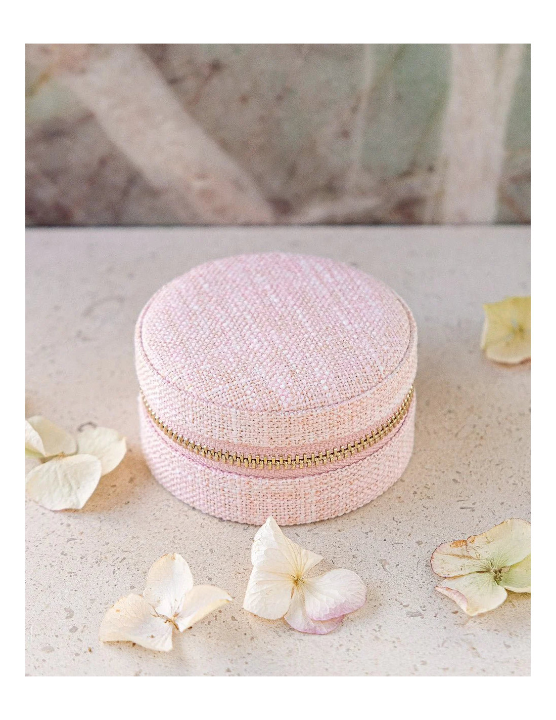 Kulatá cestovní šperkovnice ve vzhledu lnu - růžová | MAISON SCARLET a