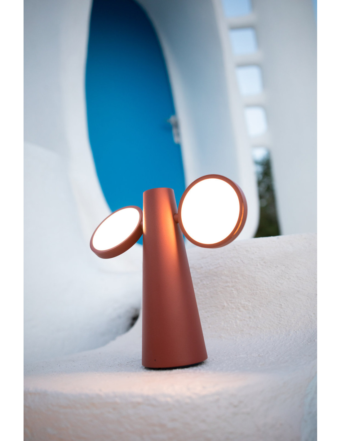 Bezdrátová stolní lampa OTO je koncentrací estetiky, funkčnosti a odolnosti. Outdoor - Indoor OTO svým vzhledem připomíná totem, který je na půli cesty mezi světlem a designovou dekorací. Dvě zábavná kulatá světla můžete otáčet o 360° a nezávisle je nastavit v poloze, kterou potřebujete. Skvělou vychytávkou je kovové poutko na spodní straně, díky kterému můžete stolní lampu proměnit v závěsné světlo. A nejen to, díky možnosti měnit intenzitu (10 - 100%) a teplotu světla (3000°K - 6000°K) může být OTO střídavě lampou stolní, noční, lampou na čtení i bodovým světlem. Lampu můžete ovládat v aplikaci Fermob i přes Bluetooth. Prostě lampa na míru!A co dobíjení? Není nic jednoduššího, bezdrátové světlo OTO se dobíjí