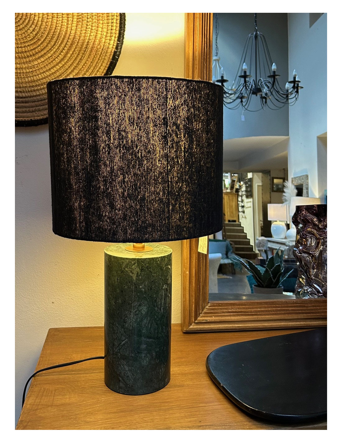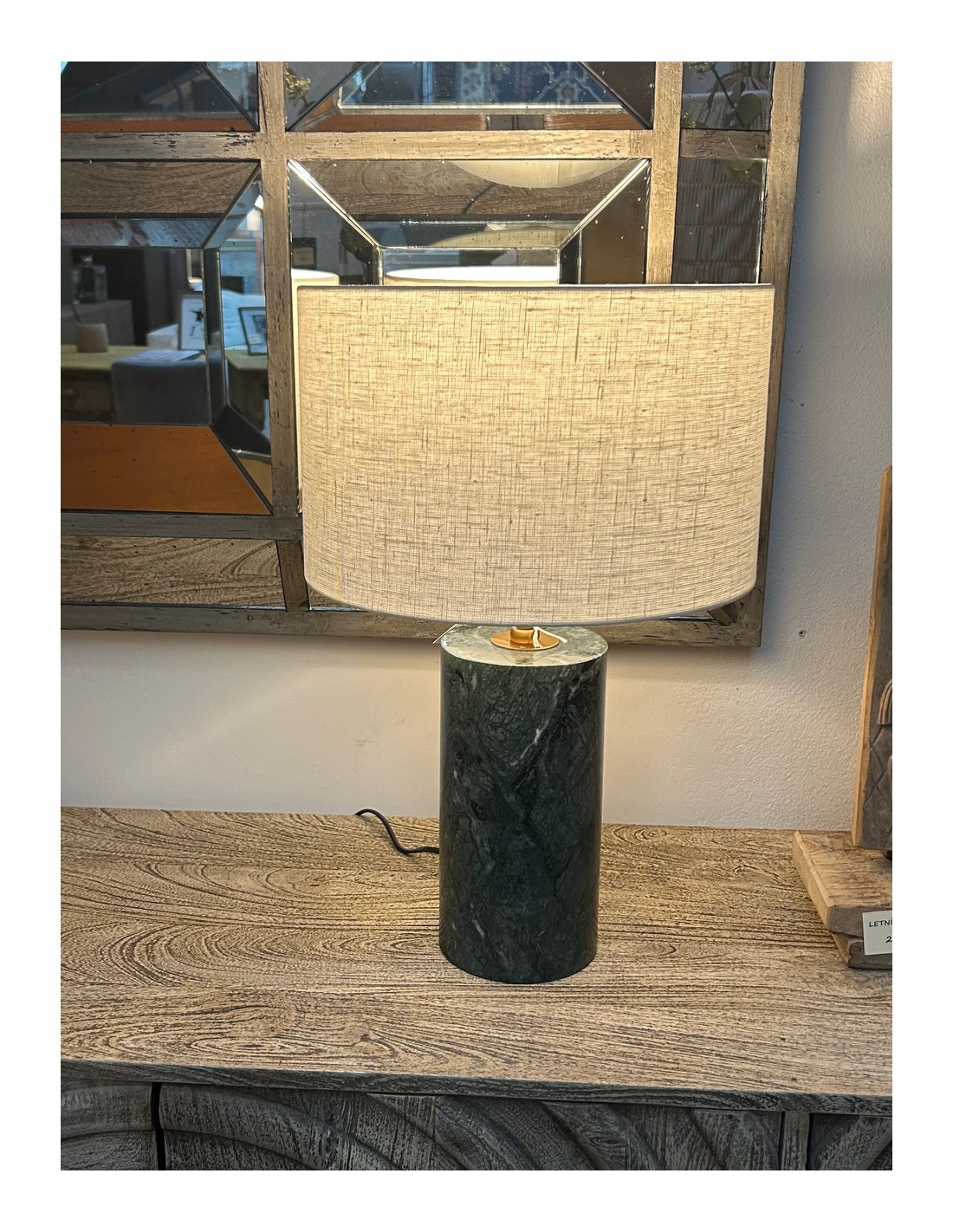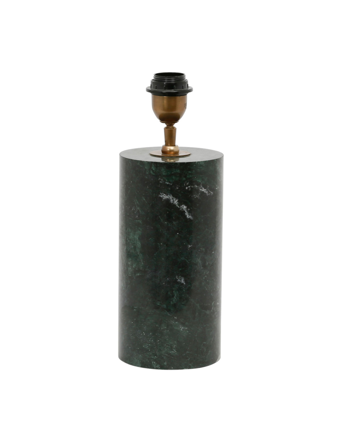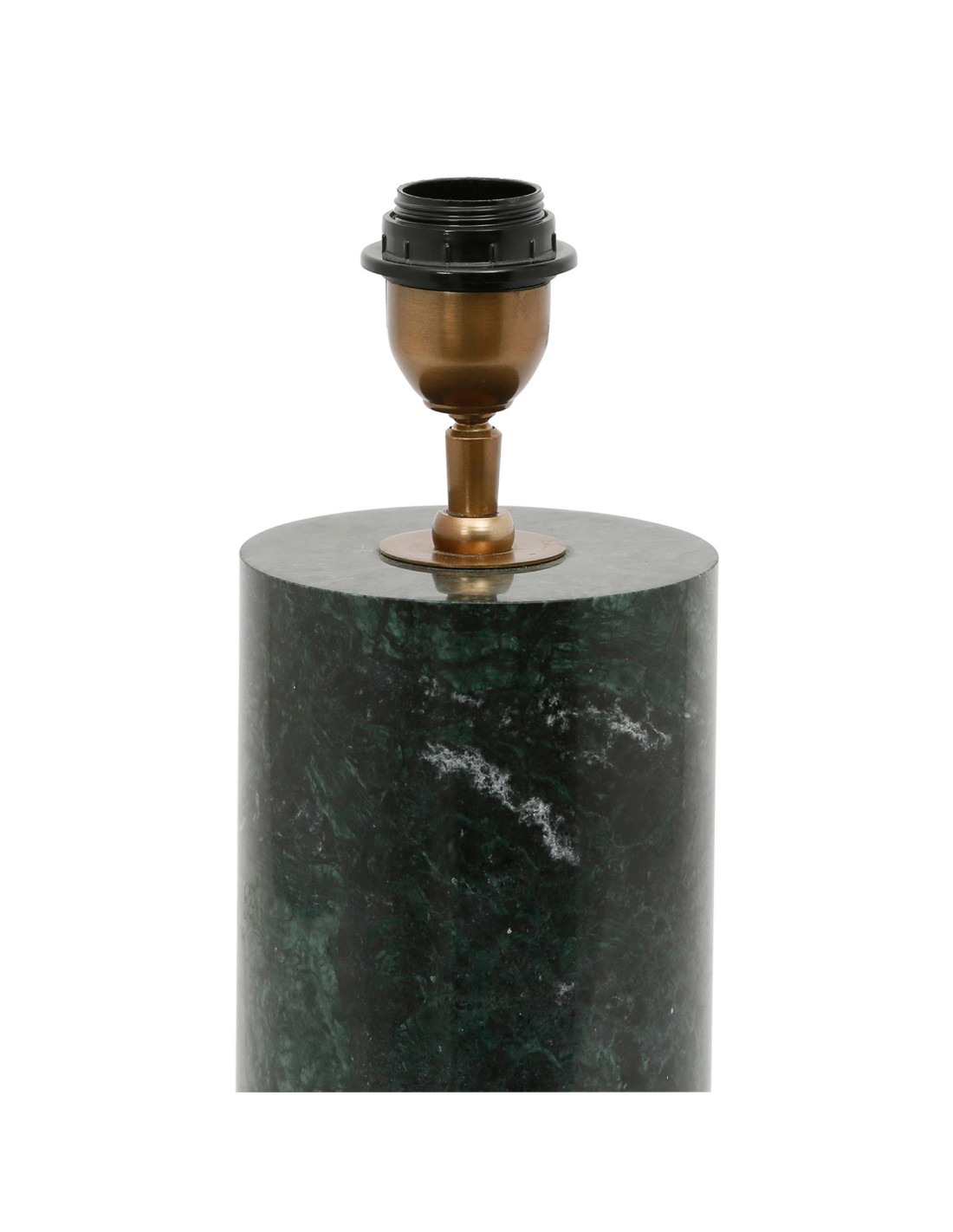 Elegantní stolní lampa s podstavcem z masivního tmavě zeleného mramoru a detailem v bronzovém odstínu je dokonalým doplňkem pro moderní i klasické interiéry. Díky svému minimalistickému tvaru a luxusnímu materiálu působí lampa nadčasově a zároveň přirozeně poutá pozornost. Lampa je dodávána bez stínítka, což umožňuje individuální výběr podle vlastního vkusu a stylu.
