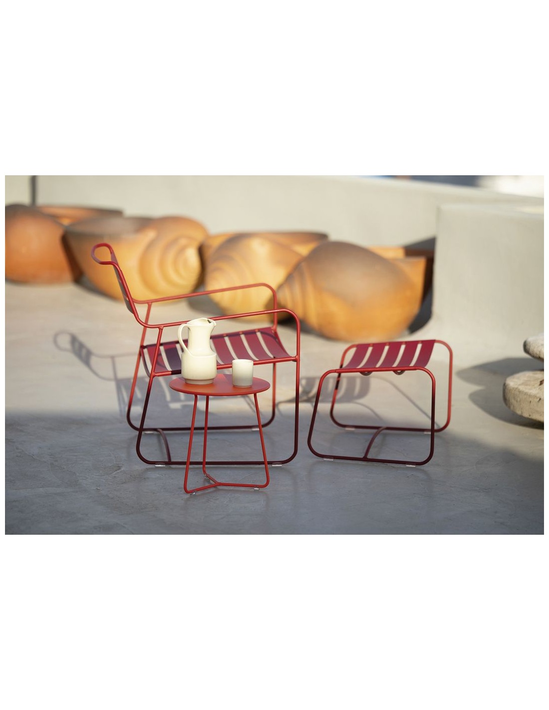 Křeslo je ideální pro venkovní použití, kde odolá nepříznivým povětrnostním podmínkám, ale skvěle se uplatní i v interiéru. V kombinaci s nízkými stolky z kolekce Fermob vytvoří stylové posezení na terase či zahradě. Pro ještě větší pohodlí jej můžete doplnit dekou, polštáři nebo praktickou podnožkou ze stejné kolekce, kterou lze snadno zasunout pod křeslo.
