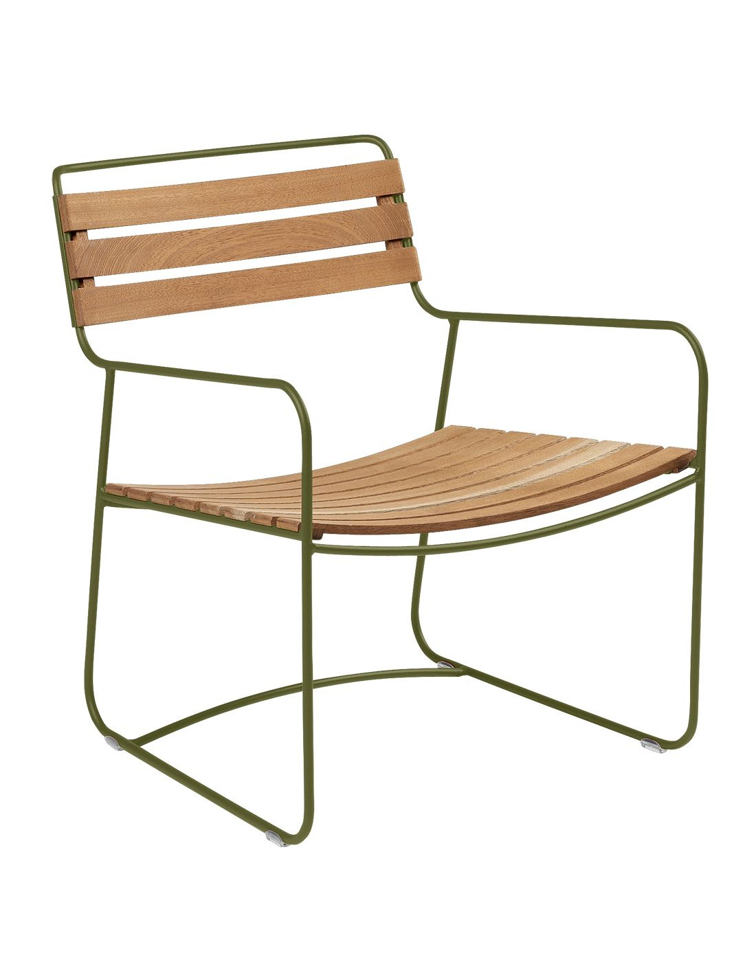 Nízké křeslo Surprising dokonale vystihuje charakter celé kolekce: elegantní ocelová konstrukce, ergonomicky tvarovaný rám a přírodní teakové lamely – to vše navržené pro maximální pohodlí a dlouhou životnost. Tento model je ukázkou toho, jak Fermob pracuje s kombinací materiálů a jak rozšiřuje svou nabídku o promyšlené a odvážné designové prvky. Křeslo spojuje pevnost kovu s přirozenou hřejivostí teakového dřeva. Výsledkem je moderní a výrazný kus nábytku, který vynikne na terase i v interiéru. Konstrukce je k dispozici ve všech barvách Fermob, což umožňuje křeslo snadno sladit s dalším vybavením.