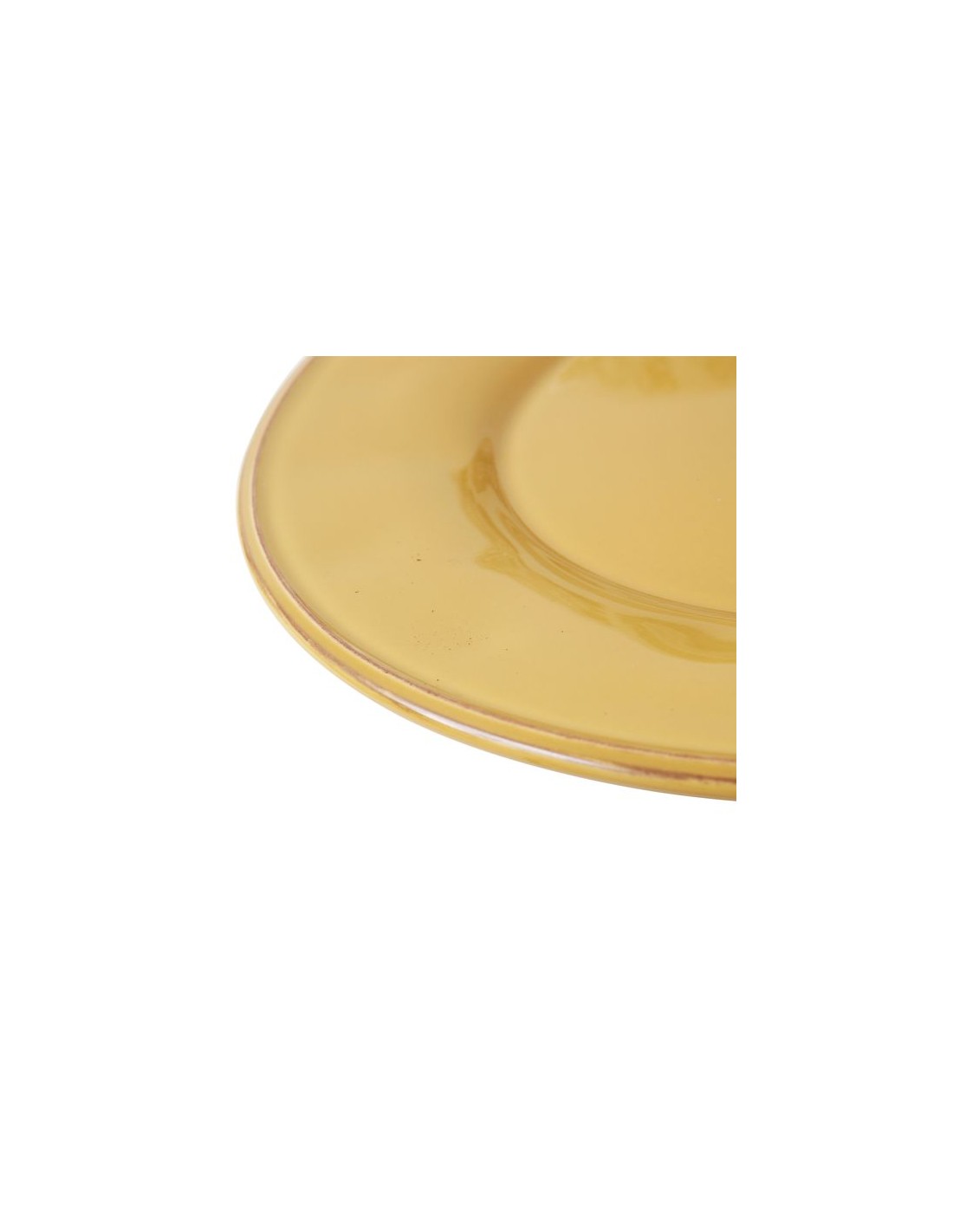Keramický, mělký talíř hořčičně žluté barvy. Okraj talíře je decentně, jemnou linkou tmavě zpatinován. Talíř je možné používat v myčce, nedoporučujeme používat v mikrovlnné troubě.