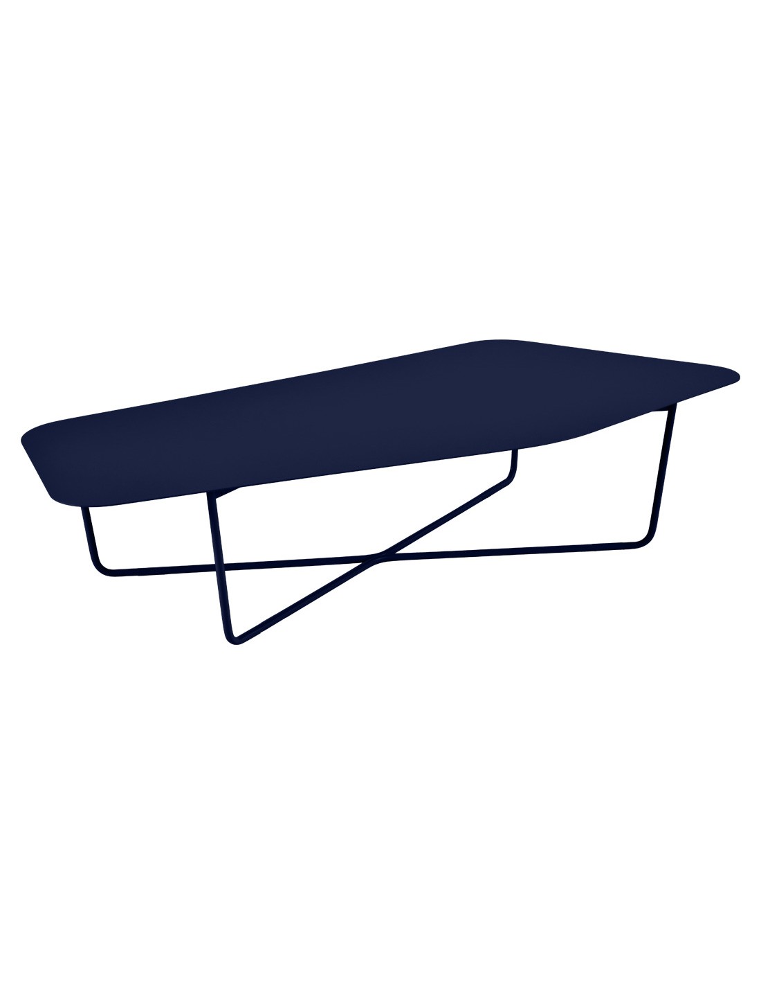 Nízký kovový stůl má asymetrické křivky a jednoduchou základnu, které mu dodávají jedinečnou identitu. Elegantní konferenční stůl, který bude vypadat dobře jak obývacím pokoji, tak venku na terase.