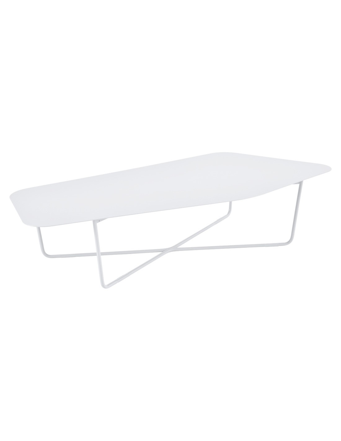 Nízký kovový stůl má asymetrické křivky a jednoduchou základnu, které mu dodávají jedinečnou identitu. Elegantní konferenční stůl, který bude vypadat dobře jak obývacím pokoji, tak venku na terase.