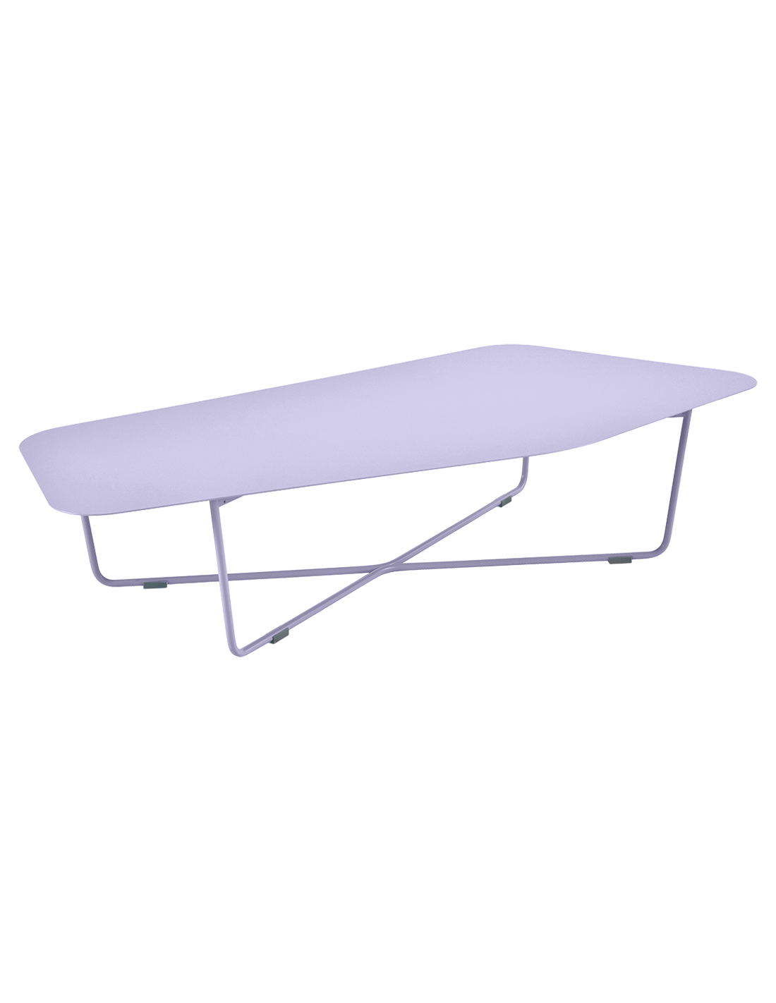 Nízký kovový stůl má asymetrické křivky a jednoduchou základnu, které mu dodávají jedinečnou identitu. Elegantní konferenční stůl, který bude vypadat dobře jak obývacím pokoji, tak venku na terase.