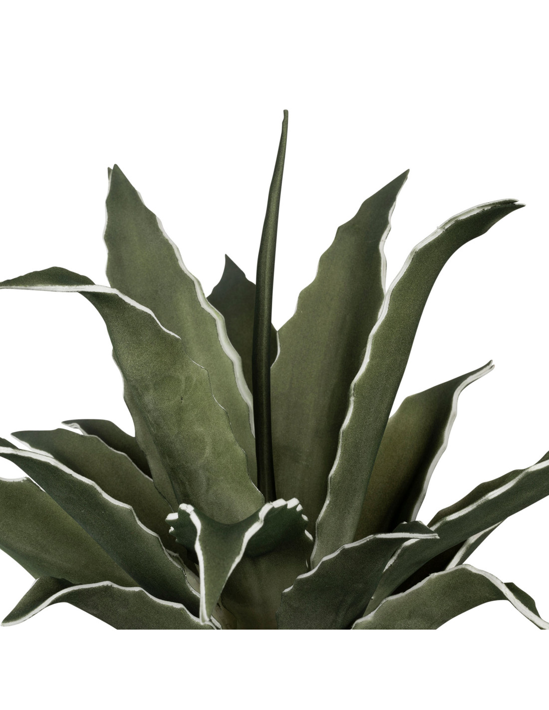 Umělá Agave vnese do interiéru exotický nádech bez nutnosti péče. Robustní listy vytvářejí bohatou růžici s jemným světlejším lemováním, které dodává rostlině hloubku a přirozený vzhled.