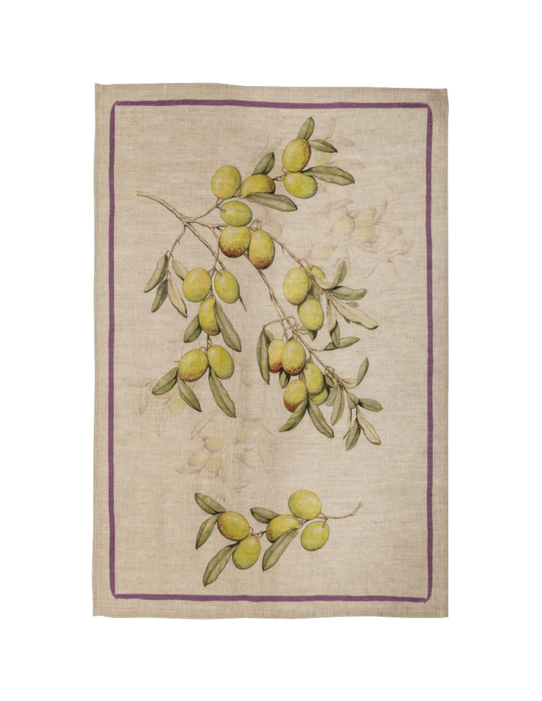 Lněná utěrka Leccino se zelenými olivami | TESSITURA TOSCANA TELERIE