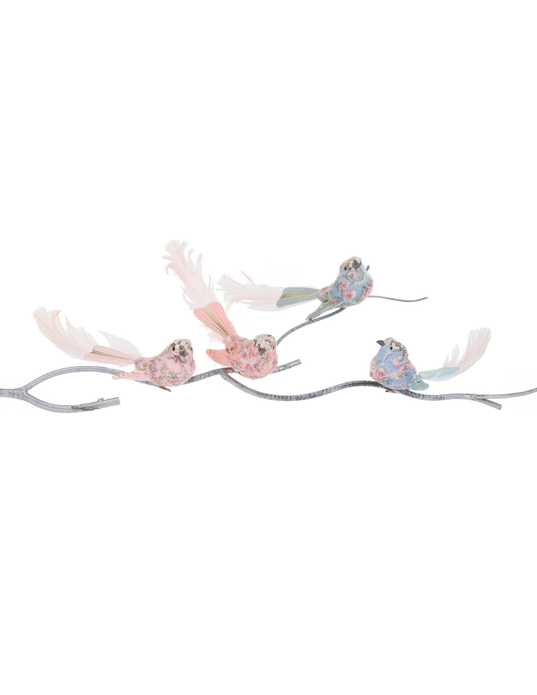 Elegantní vánoční ozdoba ve tvaru ptáčka s peříčky je klasikou mezi vánoční dekorací. Můžete ho upevnit přímo na vánoční stromek, nebo kdekoliv v interiéru, spolu s vánoční výzdobou, kde vynikne něžná, růžová pudrová barva s květinovým motivem. Ptáček s flitry zdobenou hlavičkou se jednoduše přichytí pomocí kovového klipu. Ptáčky prodáváme po jednom kuse.