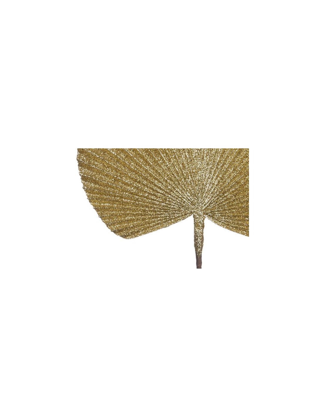 Dekorační list tvaru vějíře je ve zlaté barvě a celý jeho povrch je zdoben třpytkami. List bude hezkým a výrazným doplňkem adventní výzdoby.