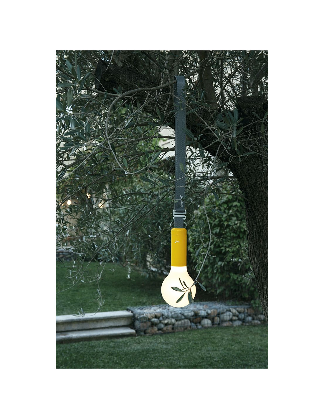 Závěsný popruh Aplô je vyroben z šedého polyesteru a je široký 3cm. Stejně jako ostatní produkty Fermob jsou popruh i hliníková základna vyrobeny tak, aby vydržely venkovní použití. To, co dělá toto příslušenství opravdu chytré, je nastavovací smyčka: použití je neuvěřitelně snadné a umožňuje vám nastavit lampu do správné výšky. Lampa Aplô se přišroubuje a vyšroubuje ze základny otočením o pouhou čtvrt otáčku. Pro vytvoření dokonale útulného koutu umístěte jednu z laviček Fermob pod vzrostlý strom. Ve dne si užijete jeho stín a stínohru jeho listů, když zapadne slunce, zavěste lampy Aplô na větve a prodlužte si večer dlouho do noci.