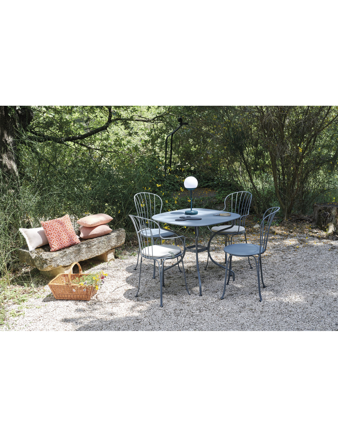 Kovové provedení s odolnou povrchovou úpravou zajišťuje dlouhou životnost i při venkovním použití. Protiskluzové podložky zaručují stabilitu a bezpečné používání při stolování.