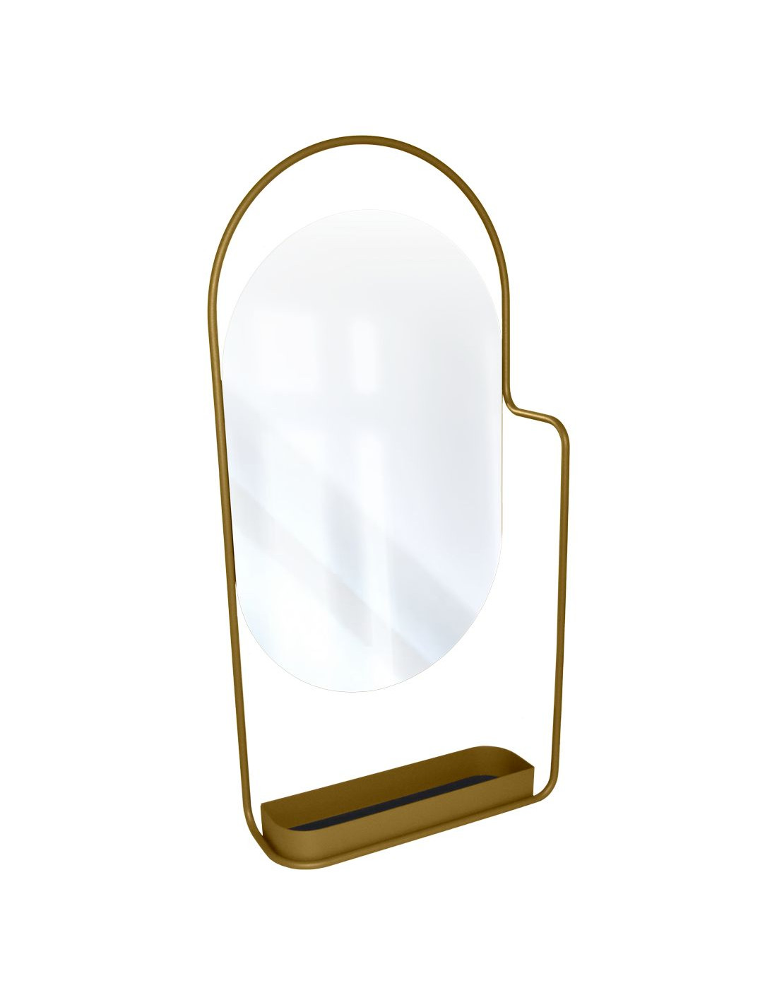 Zrcadlo snadno zavěsíte na zeď. Dno odkládací misky je vyloženo vyjímatelnou pěnovou vložkou, která chrání kov a tlumí hluk vkládaných předmětů.