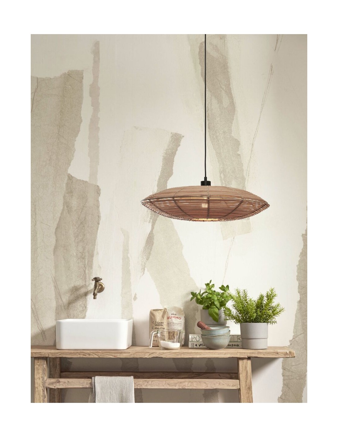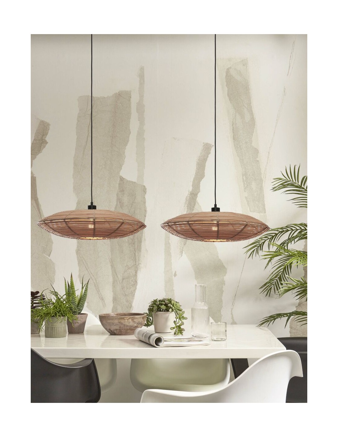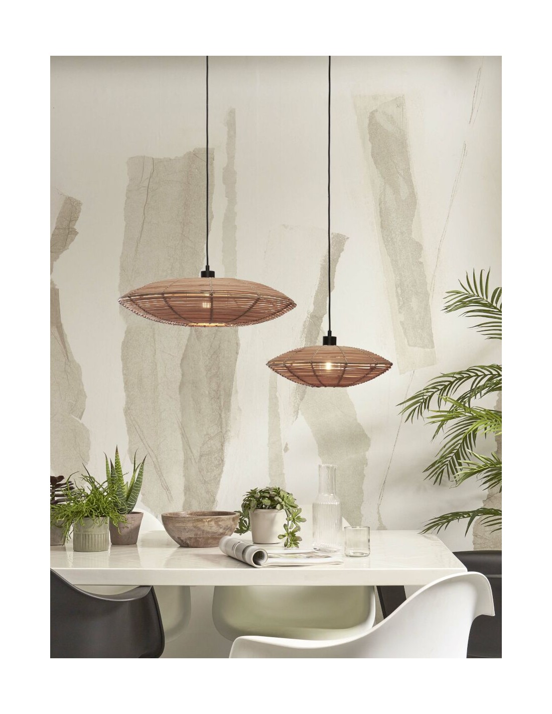 Lustr Tanami má vzhled vznášejícího se disku, je vyroben z přírodního ratanu. Lustr se hodí pro interiéry v severském, nebo natural stylu. Vzhled přírodního ratanu bude skvělý v kombinaci se zelenými květinami.Novinka z katalogu Mojo.