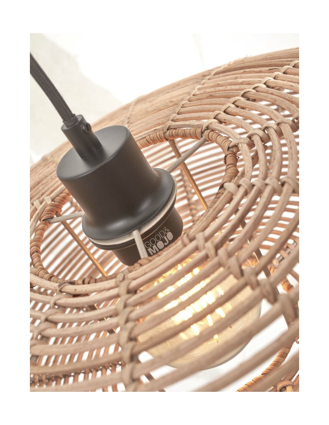 Materiál: ratan, železo s povrchovou úpravou. Tech. údaje: objímka E27, max. 60W, délka černého tex. kabelu 200cm.