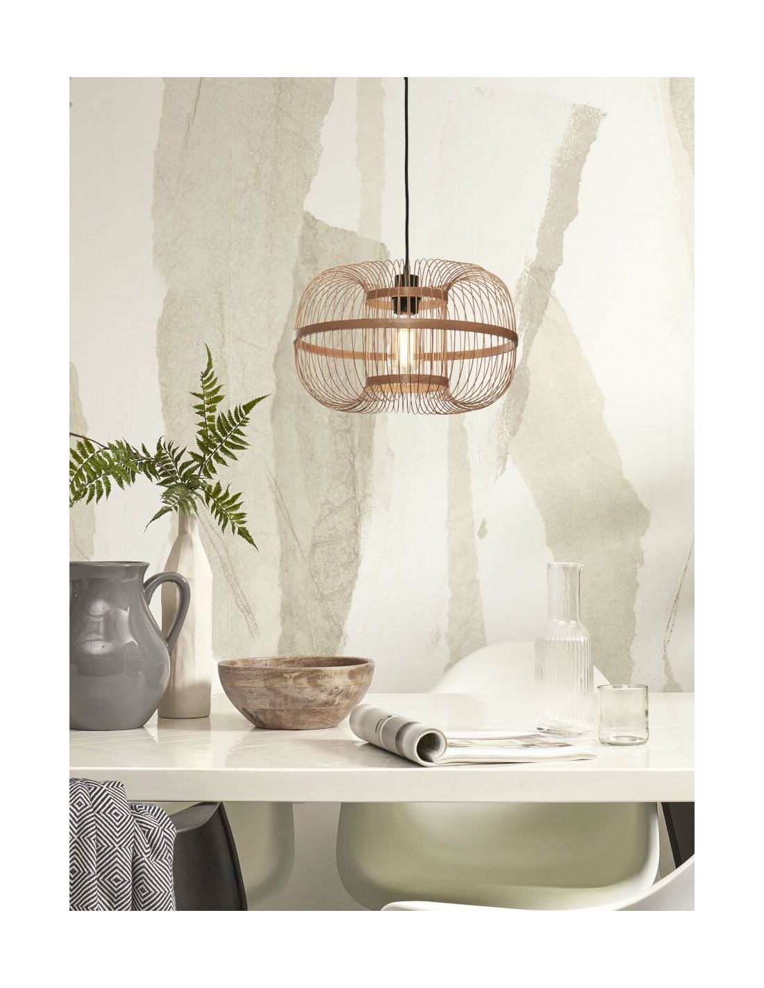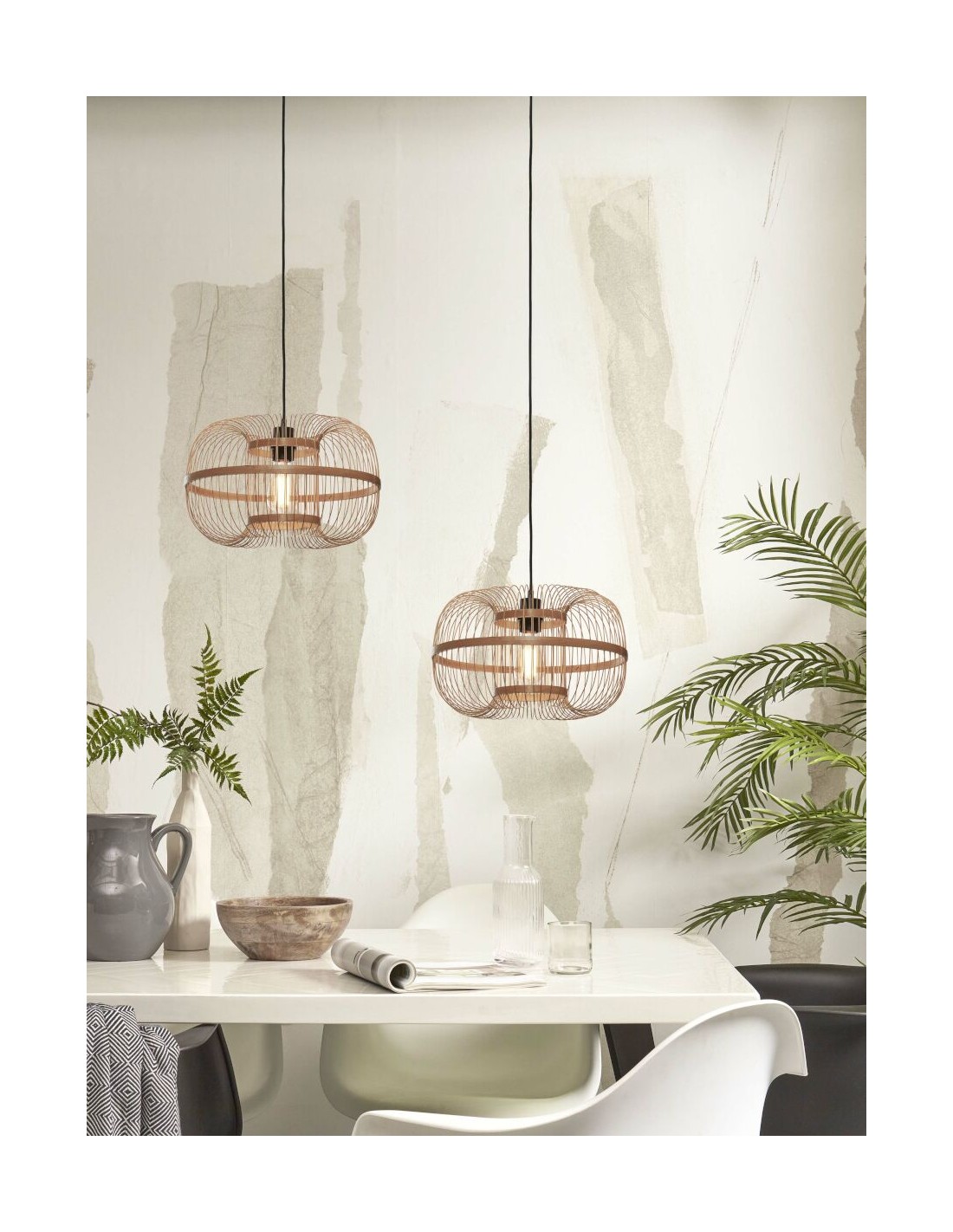 Materiál a technické parametry: bambus, železo. Objímka E27, max 60W, textilní kabel v černé barvě. Žárovka není součástí balení.