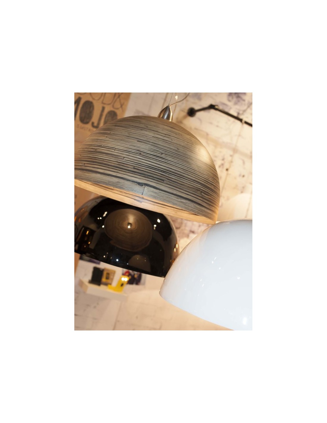 Stropní, závěsné svítidlo z přírodního bambusu. Díky dlouhému, přívodnímu kabelu se dá lustr zajímavě prověsit. Světlý vnitřek lustru ovlivňuje odraz světla, které je měkké, teplé. Tato nadčasová designová svítidla se hodí do jakéhokoliv interiéru. Holandští Romi nejen vyrábí, ale hlavně si sami navrhují svítidla inspirovaná atmosférou velkých měst. Značku charakterizuje moderní design a ekologické materiály.