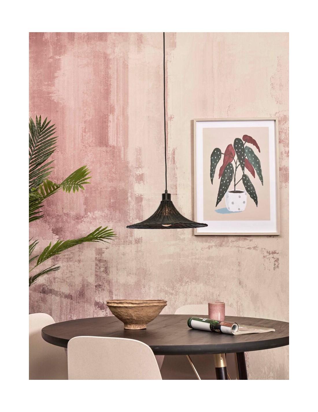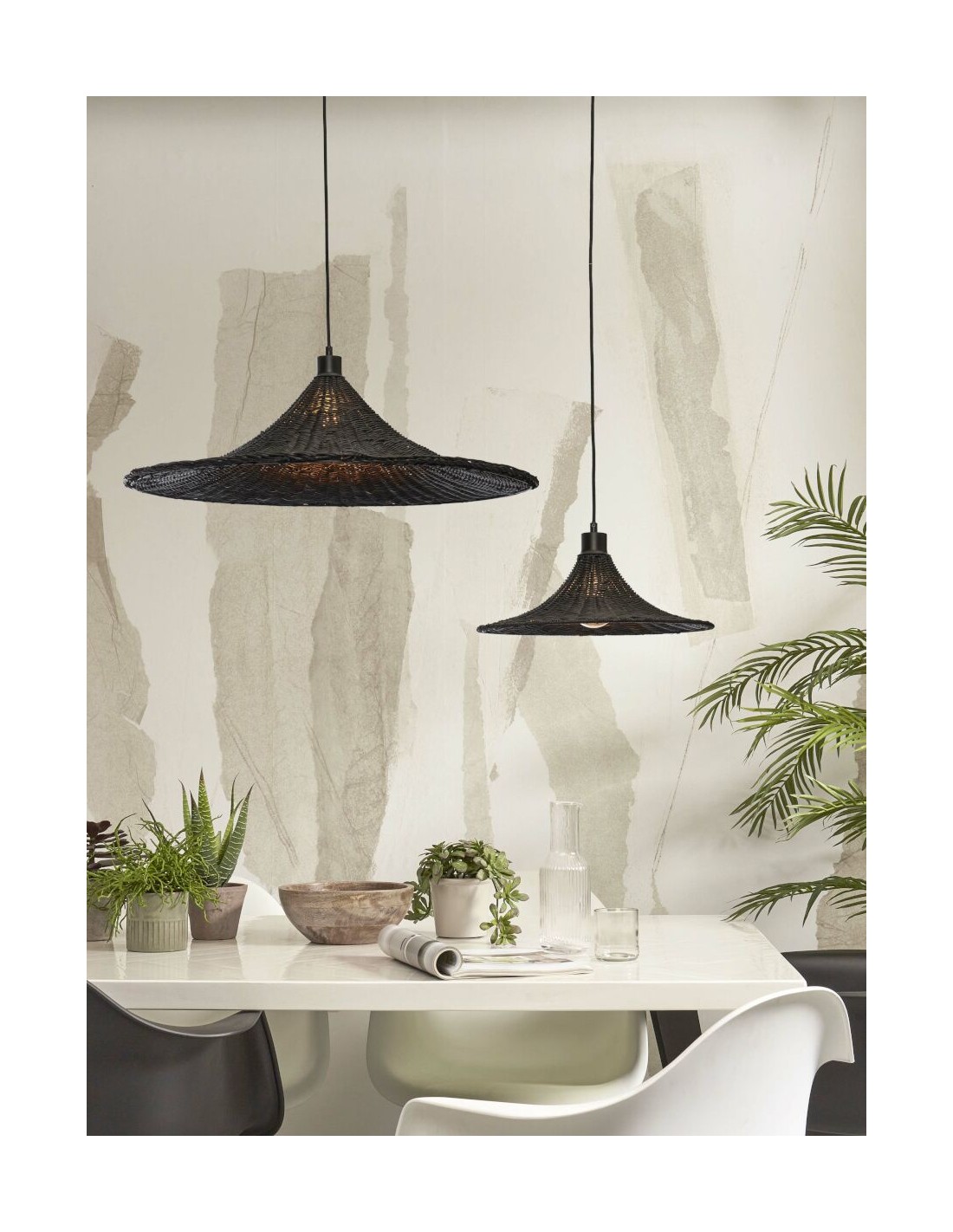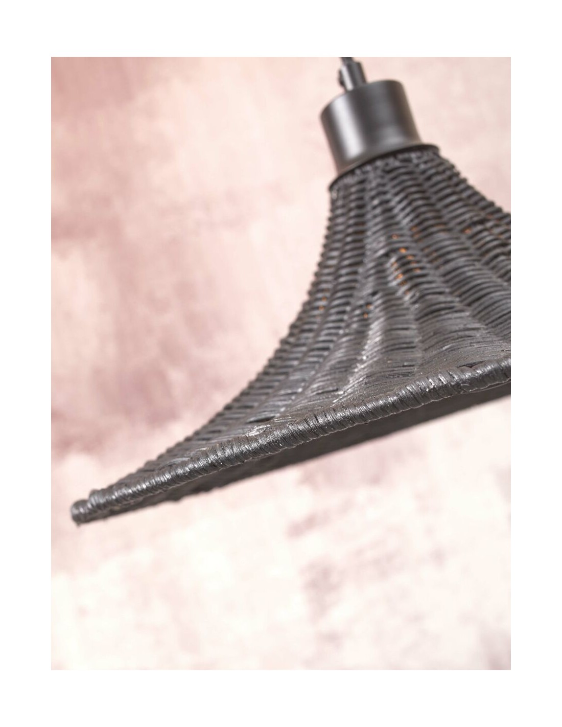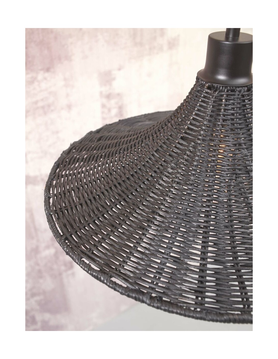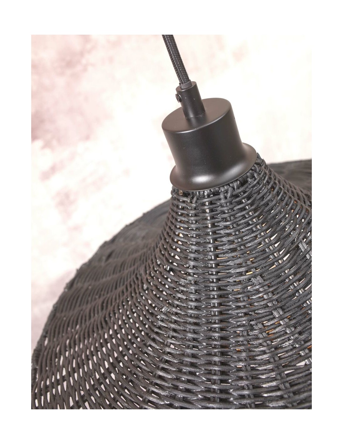 Lustr Borabora v černé barvě tvoří proplétaný štípaný bambus. Lustr je vyroben ručně, v souladu fair trade a udržitelné výroby.