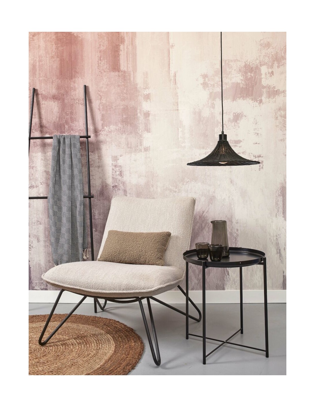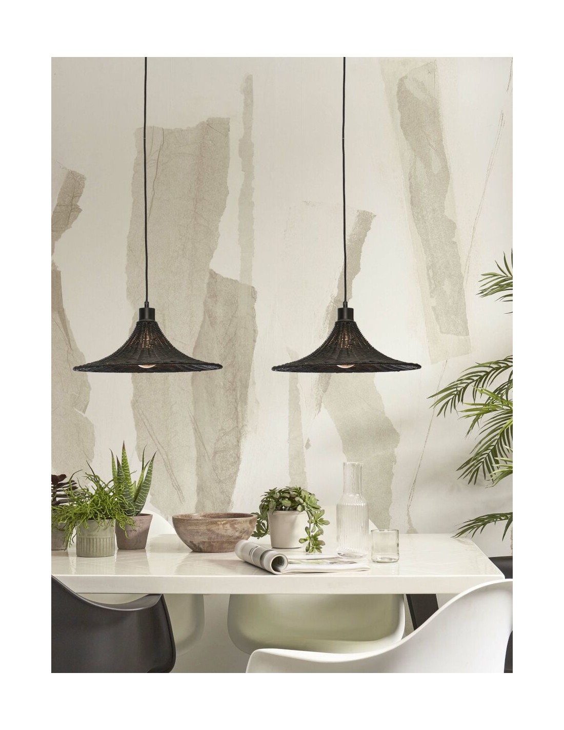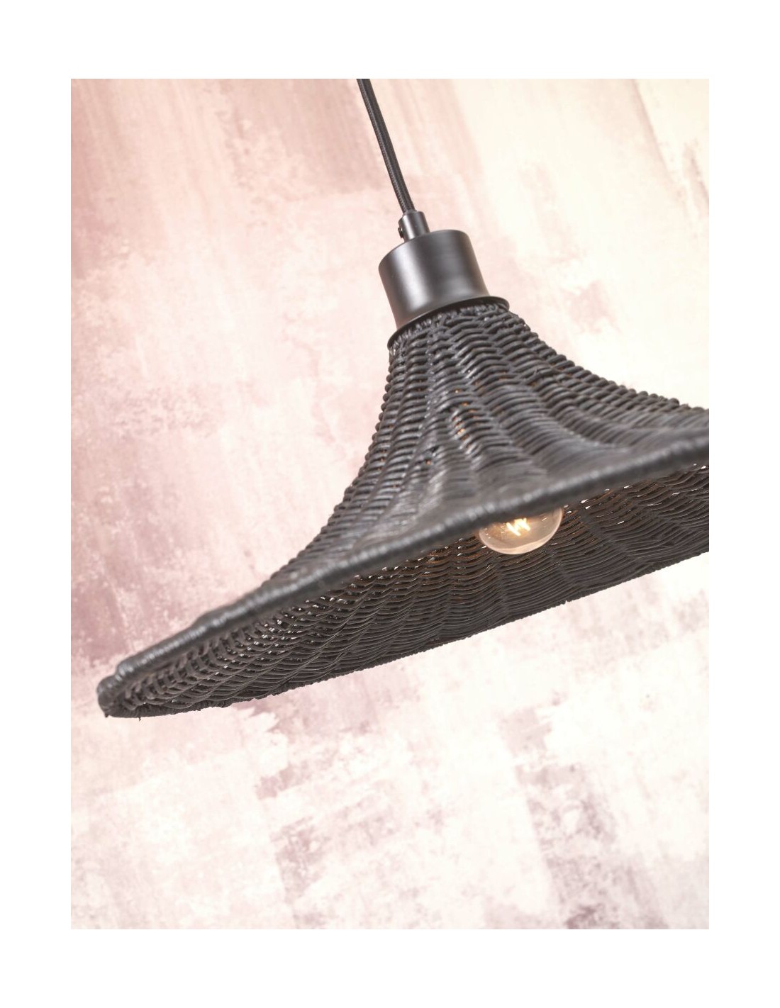Materiál a technické parametry: bambus, železo. Objímka E27, max 60W, textilní kabel v černé barvě. Žárovka není součástí balení.