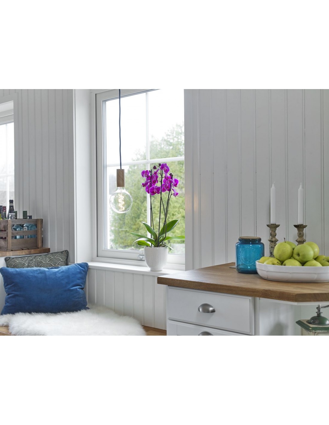 Moderní jednoduché osvětlení, které se skládá z dřevěné objímky, textilního kabelu v šedozelené barvě a černé plastové krytky. Délka kabelu 3m je dostatečná i na případné ozdobné prověšení nebo zauzlování. Pokud potřebujete kabel kratší, není složité ho zkrátit.