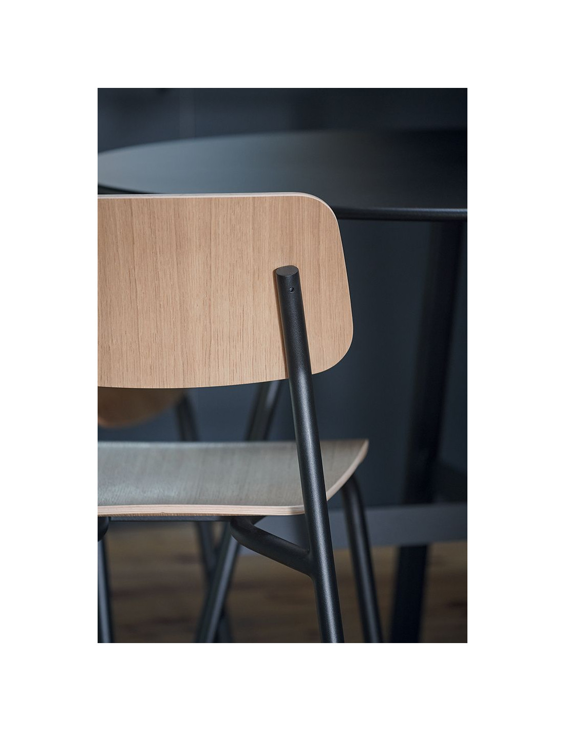 Tvarově minimalistická designová židle Studie Oak je interiérovou variantou na židli Studie. Přestože je tato židle inspirována školními židlemi, byla výrazně zmodernizovaná z hlediska pohodlí. Tvarovaný dubový sedák i opěrka zad mají křivky, které odpovídají tvaru těla a zajistí pohodlné sezení u jídelního stolu i v pracovně. Díky hliníkové konstrukci je židle lehká a dá se stohovat. Židle se vyrábí v mnoha barevných odstínech kovu, které jsou kombinovány s přírodním dřevem.