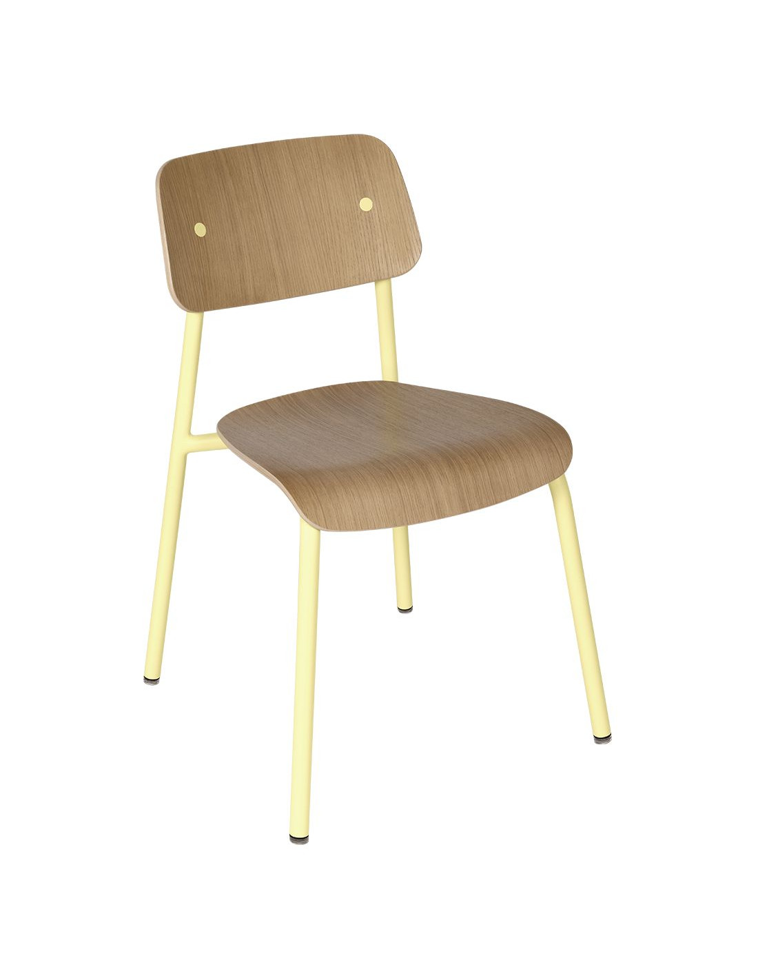 Kovová židle Studie se dřevem, indoor | FERMOB-8 frosted lemon