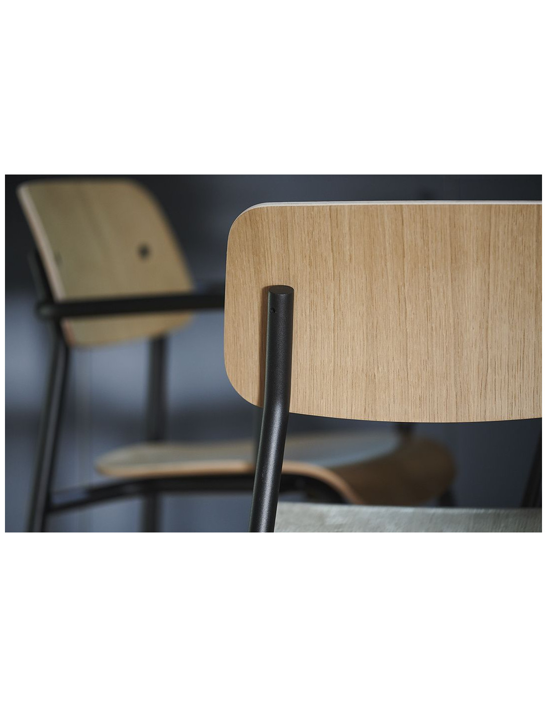 Tvarově minimalistická designová židle Studie Oak je interiérovou variantou na židli Studie. Přestože je tato židle inspirována školními židlemi, byla výrazně zmodernizovaná z hlediska pohodlí. Tvarovaný dubový sedák i opěrka zad mají křivky, které odpovídají tvaru těla a zajistí pohodlné sezení u jídelního stolu i v pracovně. Díky hliníkové konstrukci je židle lehká a dá se stohovat. Židle se vyrábí v mnoha barevných odstínech kovu, které jsou kombinovány s přírodním dřevem.