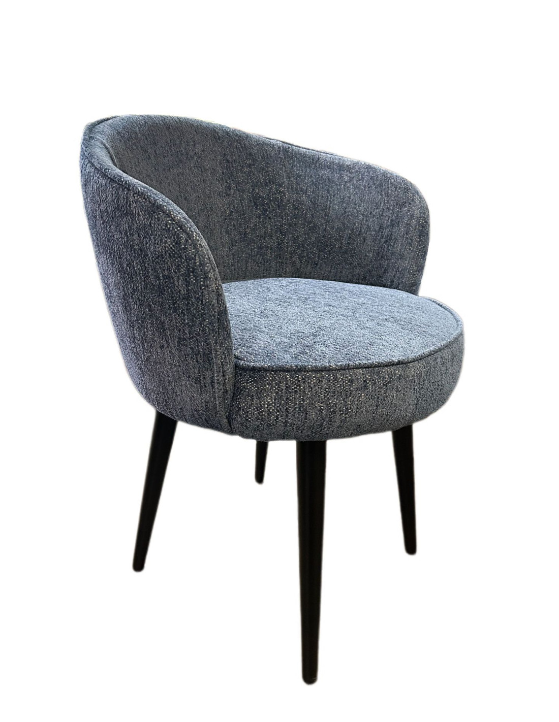 Pohodlná židle Alice s područkami vás osloví trendy čalouněním v melírované modré barvě a příjemným oblým vzhledem. Melírovaná barva a potah s hrubší strukturou se hodí téměř pro každý interiér. Pokud potřebujete, můžete si židli objednat s jiným potahem, katalogy a vzorníky máme v obchodě Jungmannova, zde vám rádi poradíme s výběrem.