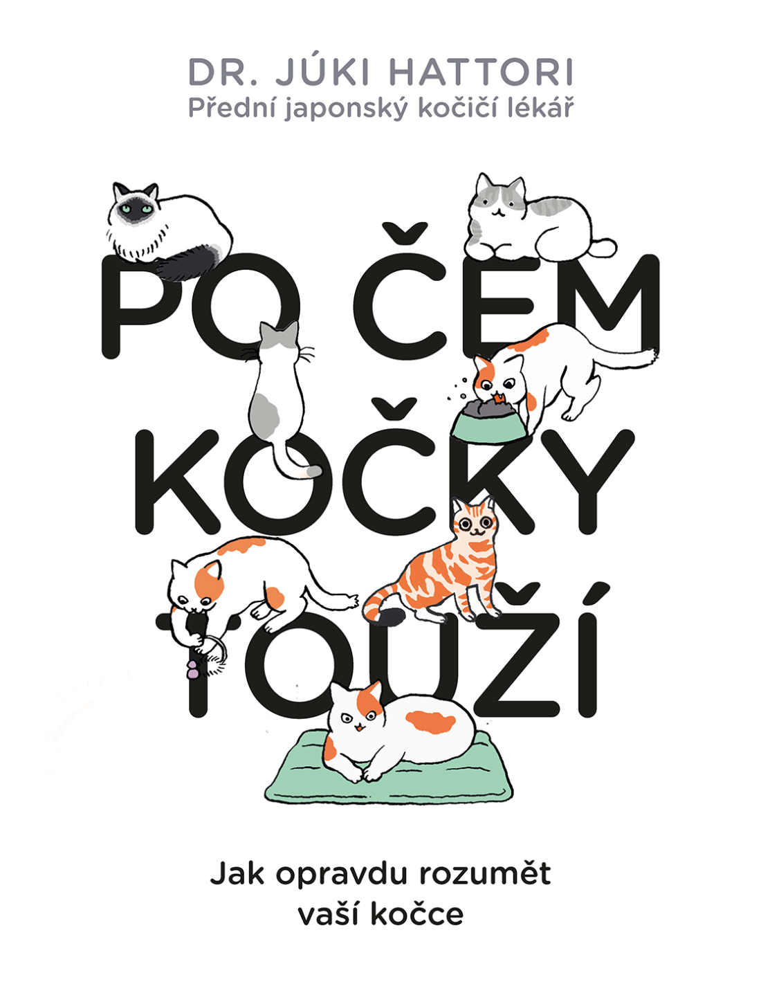 Júki Hattori je japonský veterinář a přední kočičí specialista, který kočky považuje za nejkrásnější zvířata na světě. Proto vytvořil tento praktický lidsko-kočičí slovník doplněný o ilustrace a tabulky. Ukazuje v něm, čeho si přesně všímat, jak interpretovat různé druhy mňoukání, směřování vousků a pozici ocásku! Možná si myslíte, že jsou kočky nenáročné, ale pokud budete vědět, kam jim máte dát misku s vodou, jaká jim vyhovuje teplota, jim vybrat dobré jméno a jak se s nimi správně mazlit, můžete jim úplně změnit život.