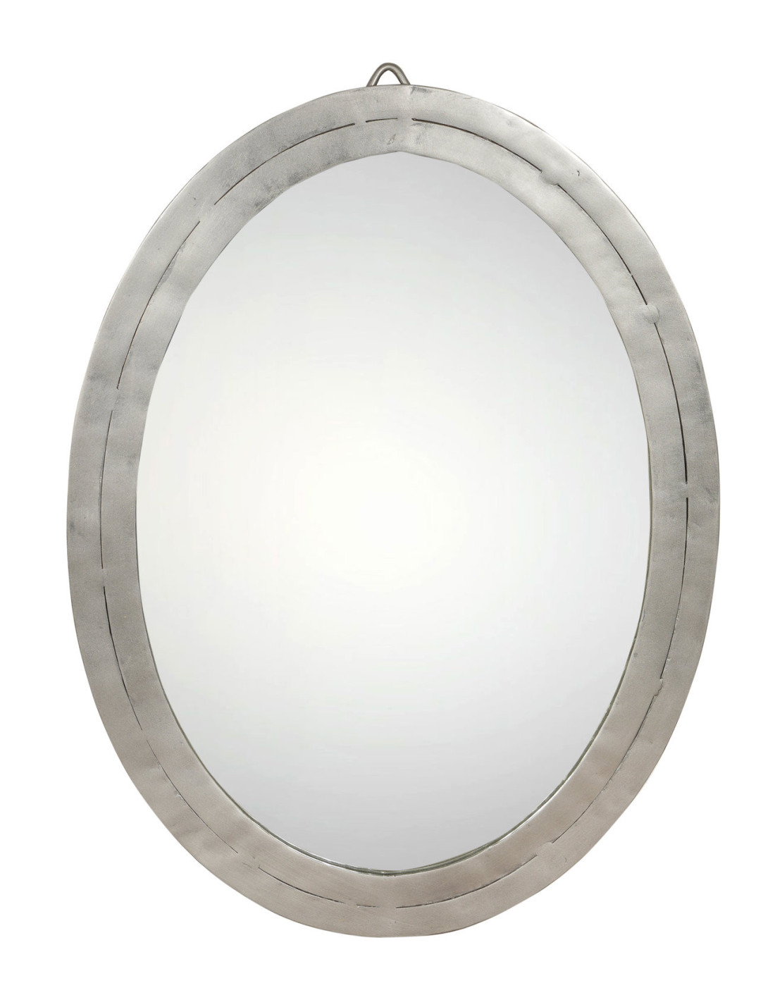 Oválné zrcadlo v kovovém industriálním rámu, stříbrné, 45x60 | dovoz Indie