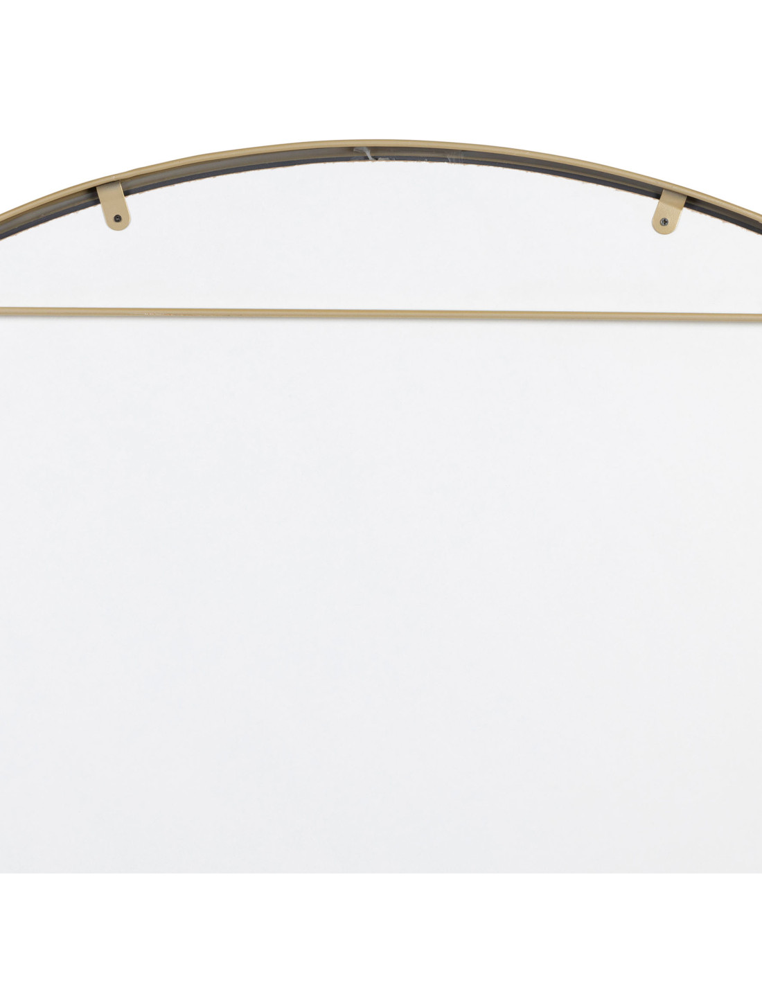 Zrcadlo definuje minimalistický, ale luxusní design. Je ohraničeno tenkým, kovovým rámem ve zlatém odstínu. Tento jemný rám dodává zrcadlu sofistikovaný vzhled, který se hodí ke stylům moderní elegance, art deco a glamour. Velký rozměr zrcadla efektivně znásobí světlo v místnosti a opticky zvětší prostor, čímž se i menší pokoje zdají vzdušnější.